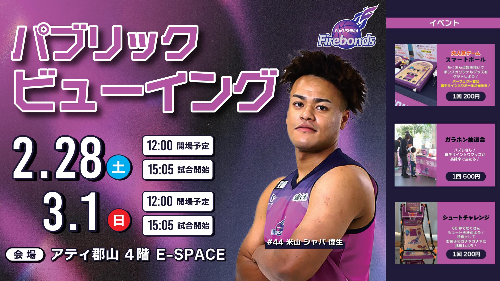 \ボンズくんもやってくる!/ 2/28(土)、3/1(日) #福島ファイヤーボンズ パブリックビューイングイベント #アティ郡山 4階E-SPACEにて開催! 会場ではサイン入りグッズなどが当たる 体験型イベントも開催します! アティ郡山で一緒に #ファイヤーボンズ を応炎しよう!