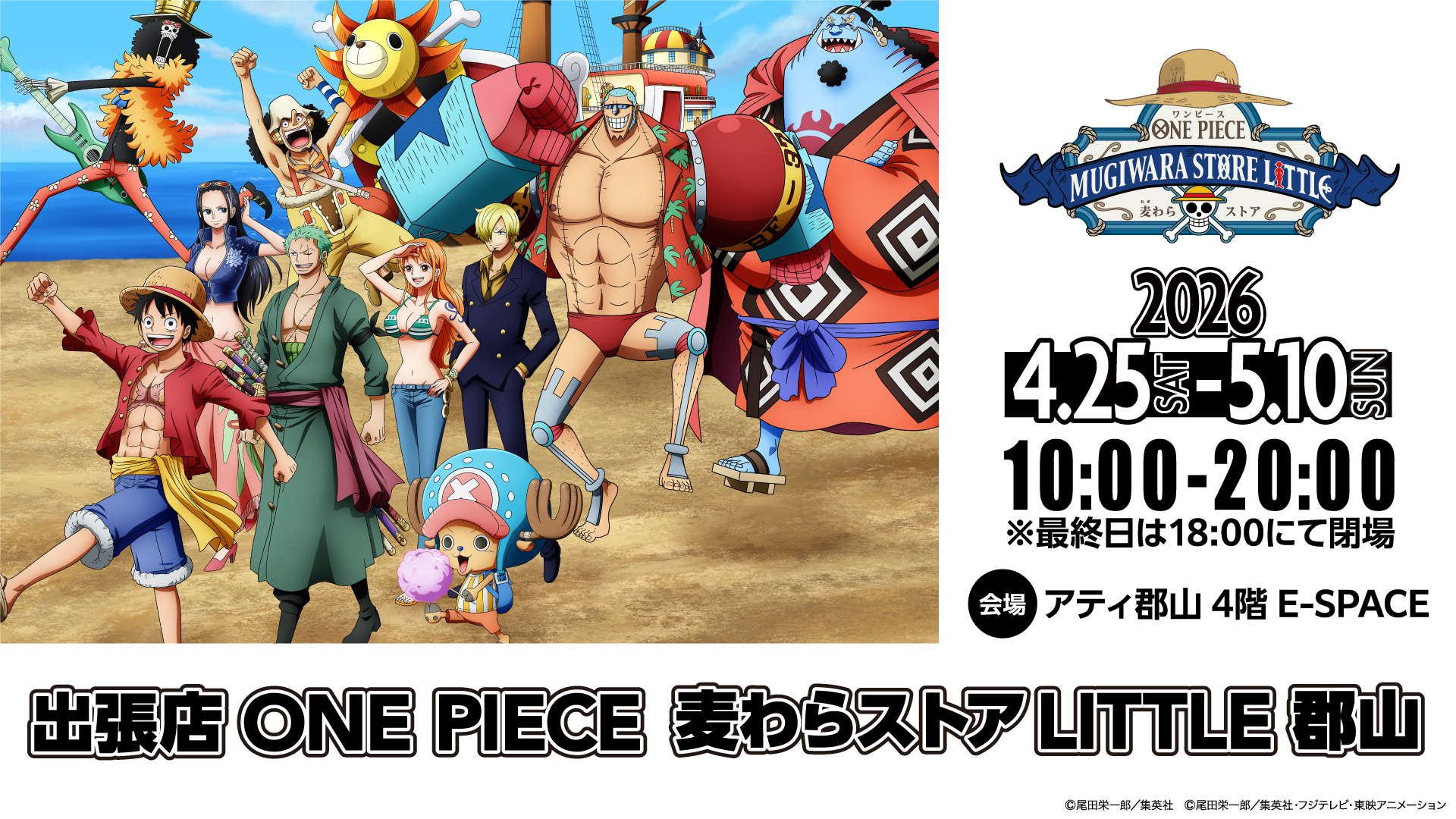 RT @Eiichiro_Staff: 【グッズ情報】 4.25(土)~5.10(日)の期間限定で 福島県郡山市に #麦わらストア 出張店がオープンします🛍️ 場所はアティ郡山 4F E-SPACEです。 お楽しみに! #ONEPIECE