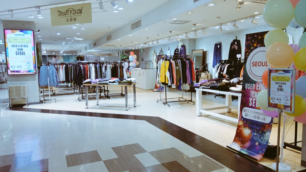 \POP UP STORE/ 老舗古着屋「デザートスノー」による 韓国古着ポップアップの開催が決定!👕🎪 韓国のトレンドブランドからインターナショナルブランドまで豊富にラインナップ!! ご来場お待ちしております😊 期間:4/1(水)〜4/5(日) 場所:アティ郡山 4階 E-SPACE 時間:10:00〜20:00
