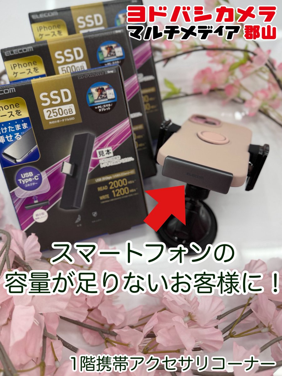 【わずか8gで思い出を保存!!】 1階携帯アクセサリコーナーに 「スマホ用SSD」が新登場✨ 超軽量ながら250GBから1TBまで保存可能🎶 スマホケースやMagSafe製品を外す手間もいりません👍 年度末、旅行の思い出を記録するためにいかがですか❓ ➡