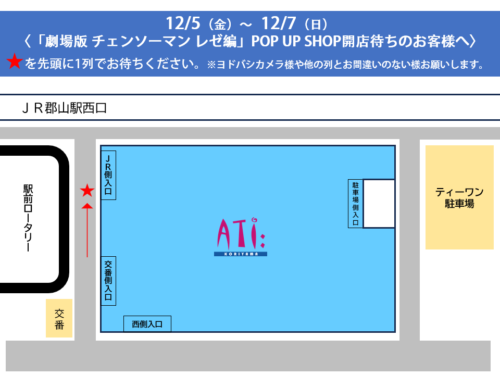 大ヒット上映中の「劇場版 チェンソーマン レゼ編」のPOP UP SHOP『CHAINSAW MAN PLAZA TheMovie:RezeArc』をアティ郡山で開催!