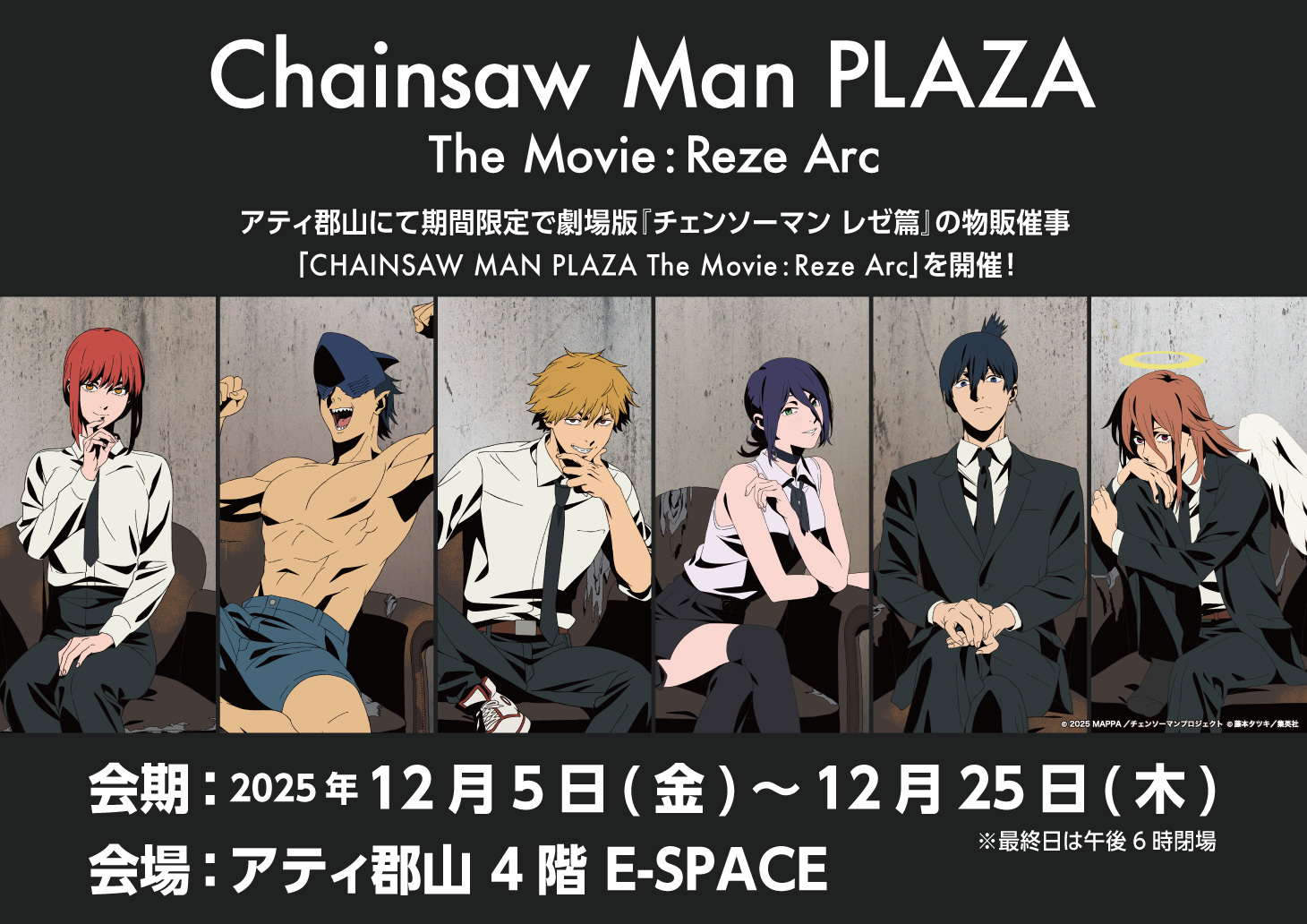 大ヒット上映中の「劇場版 チェンソーマン レゼ編」のPOP UP SHOP『CHAINSAW MAN PLAZA TheMovie:RezeArc』をアティ郡山で開催!