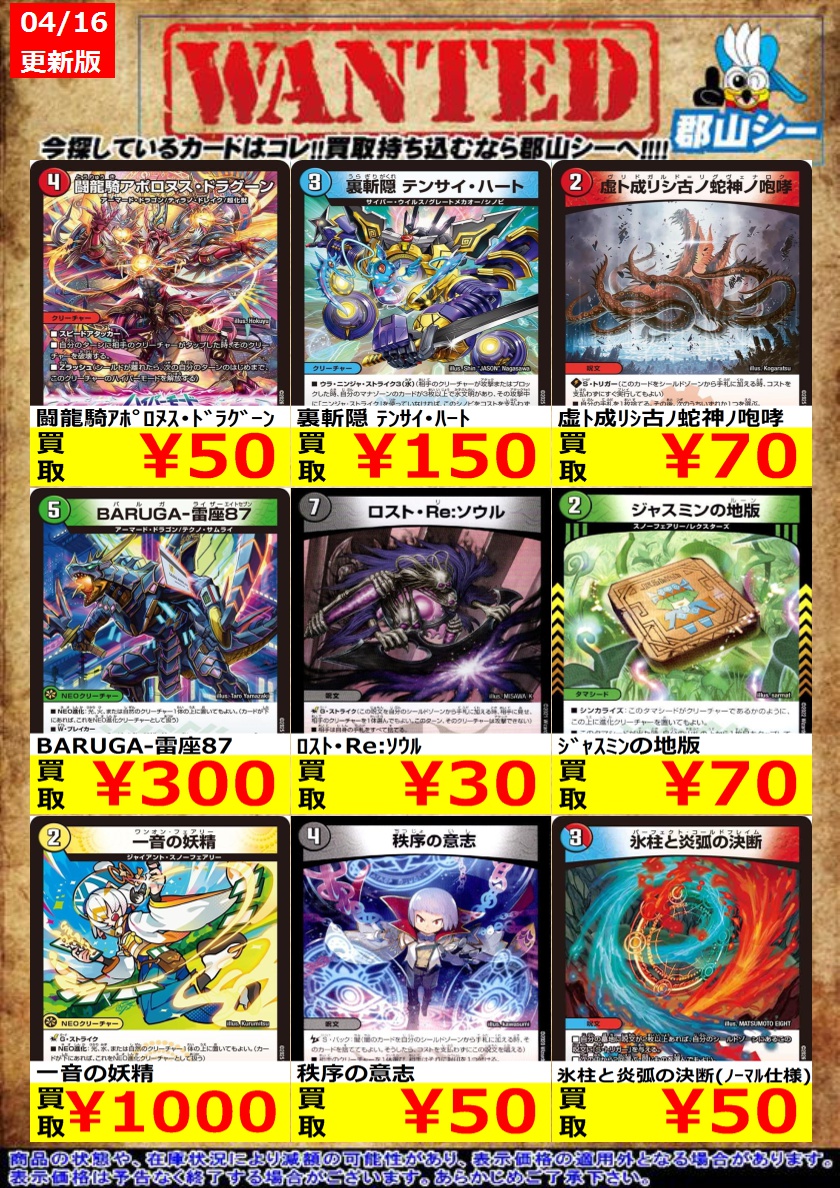 — カードゲームのシーガル郡山店 (@seagull_koriyam) / Twitter (@seagull_koriyam)