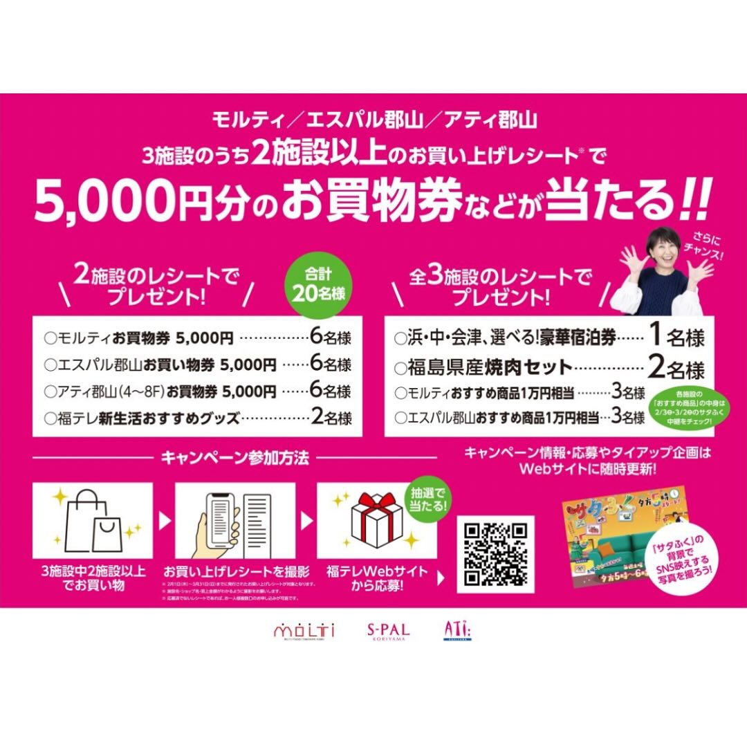 対象施設:アティ郡山・エスパル郡山・モルティ
