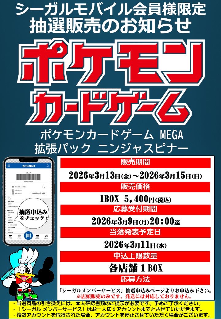 — カードゲームのシーガル郡山店 (@seagull_koriyam) / Twitter (@seagull_koriyam)