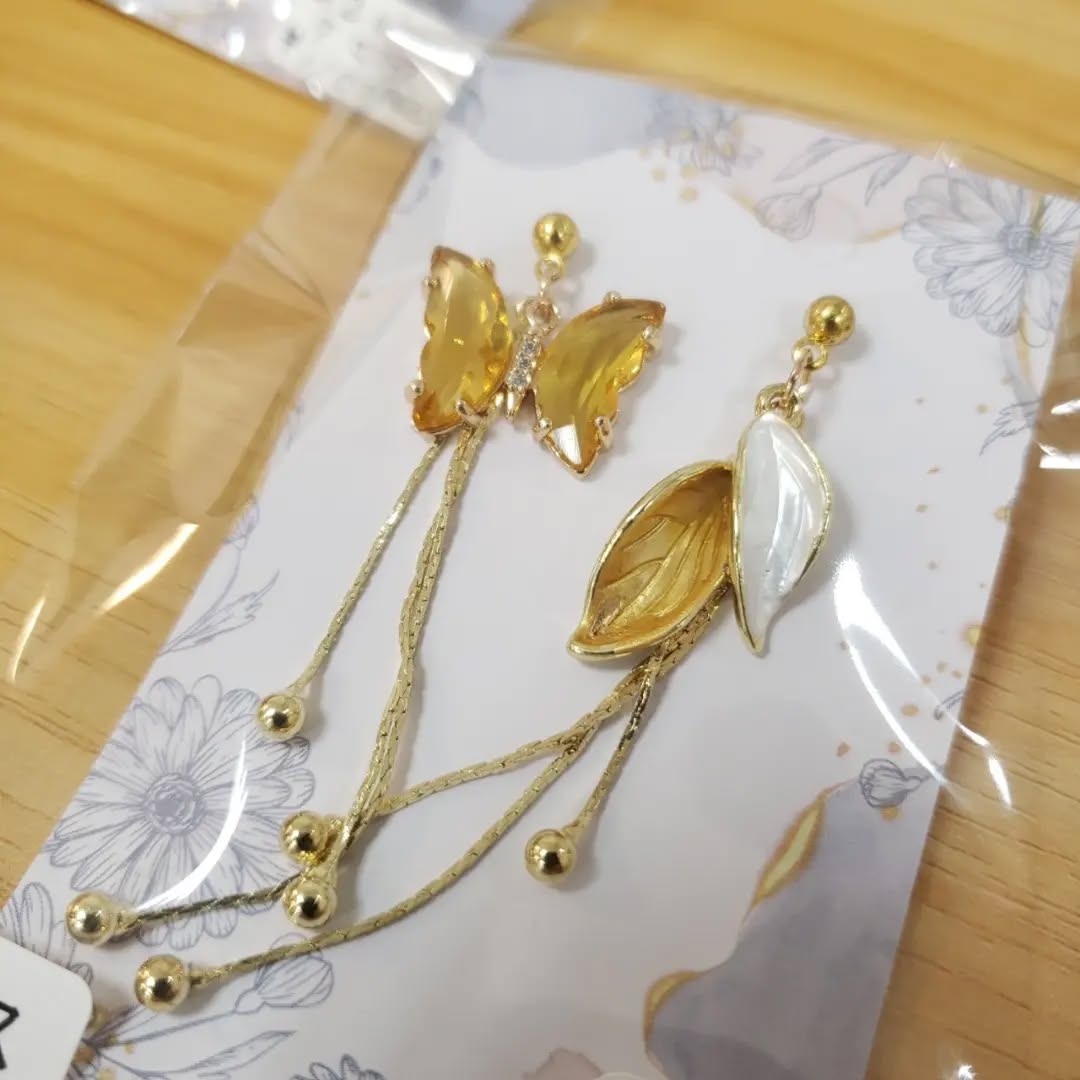 アシンメトリーが素敵なロングピアスと、