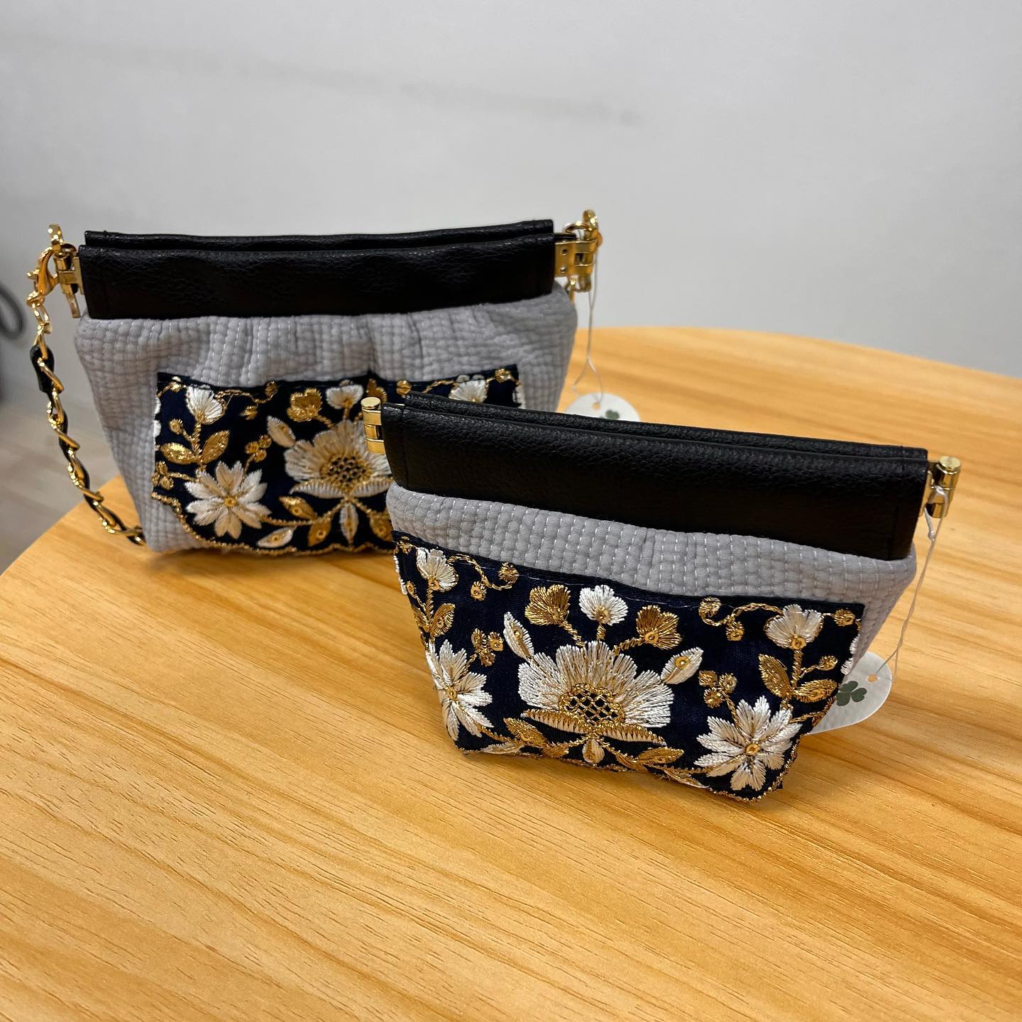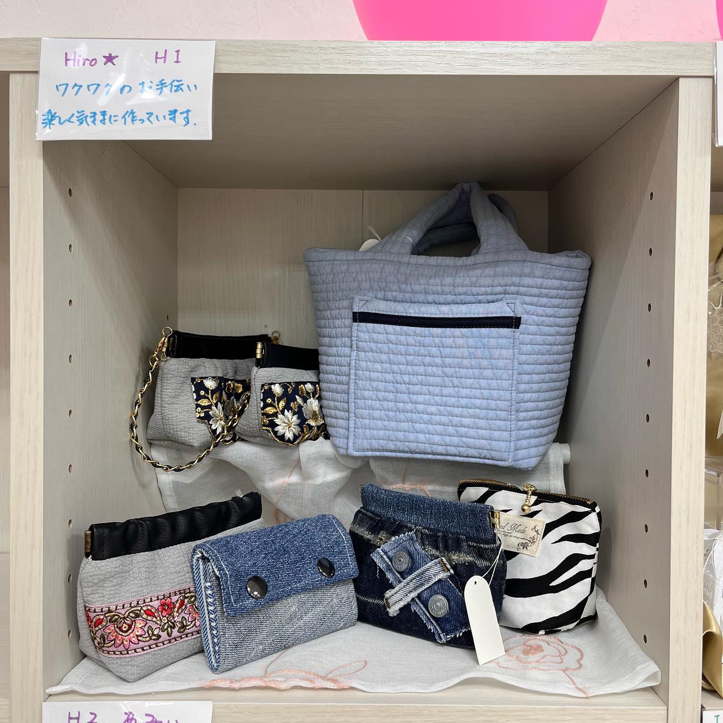 インド刺繍リボンを使った小物やデニム小物など入荷しています