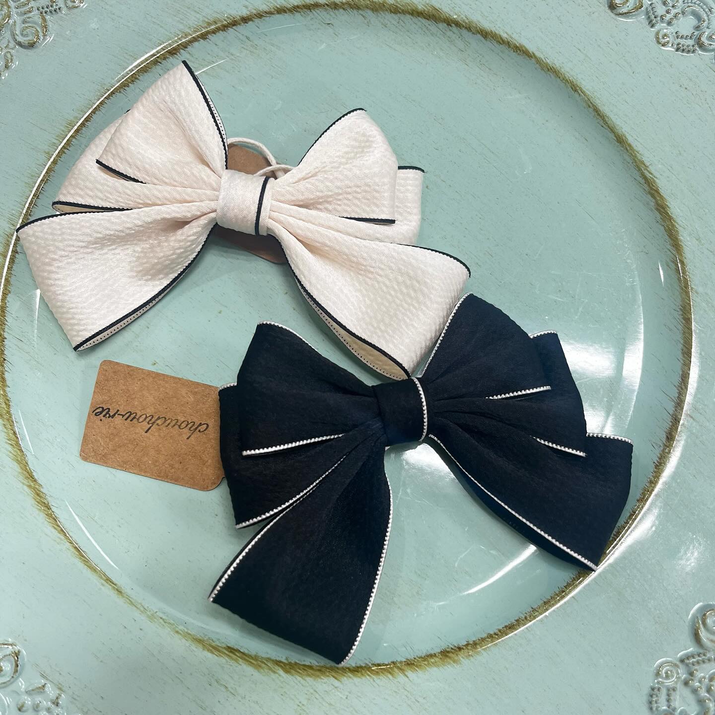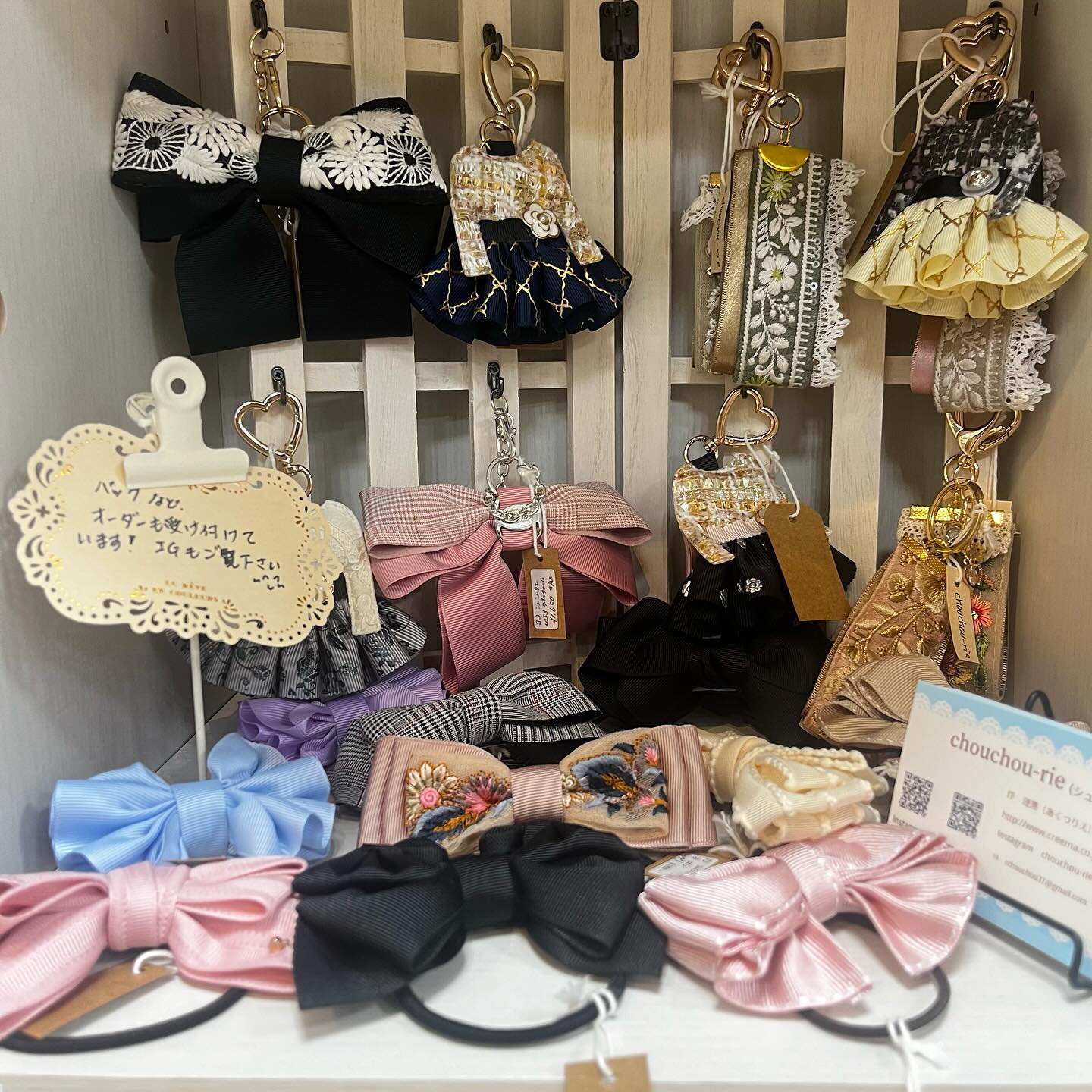 リボンのチャームにヘアクリップ