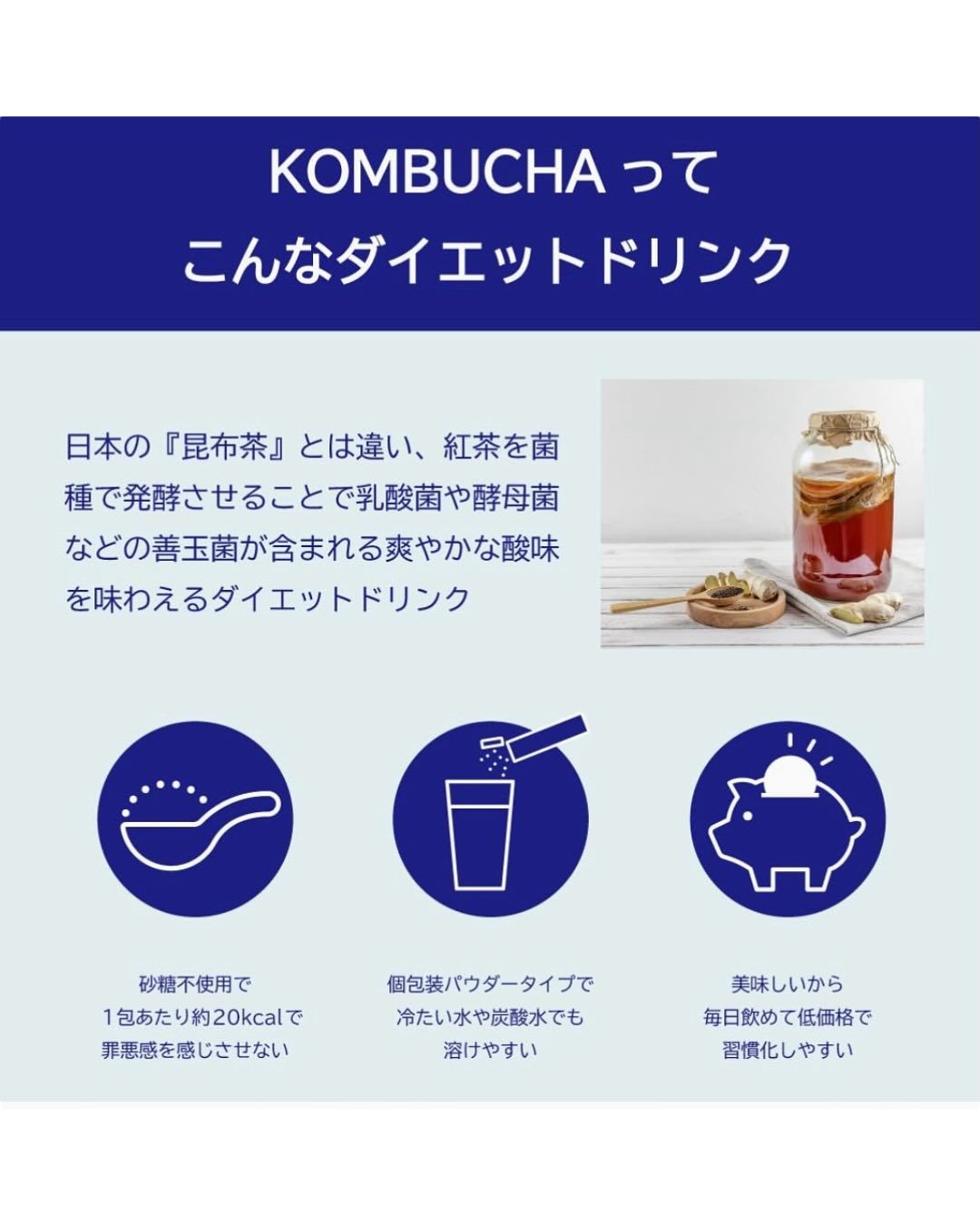 日本の『コンブチャ』とは違って、紅茶を菌種で発酵させることで乳酸菌や酵母菌などの善玉菌が含まれてる爽やかな酵味を加えるダイエットドリンク