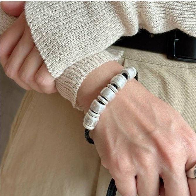 編まれたコードがスタイリッシュに手元を飾ります。