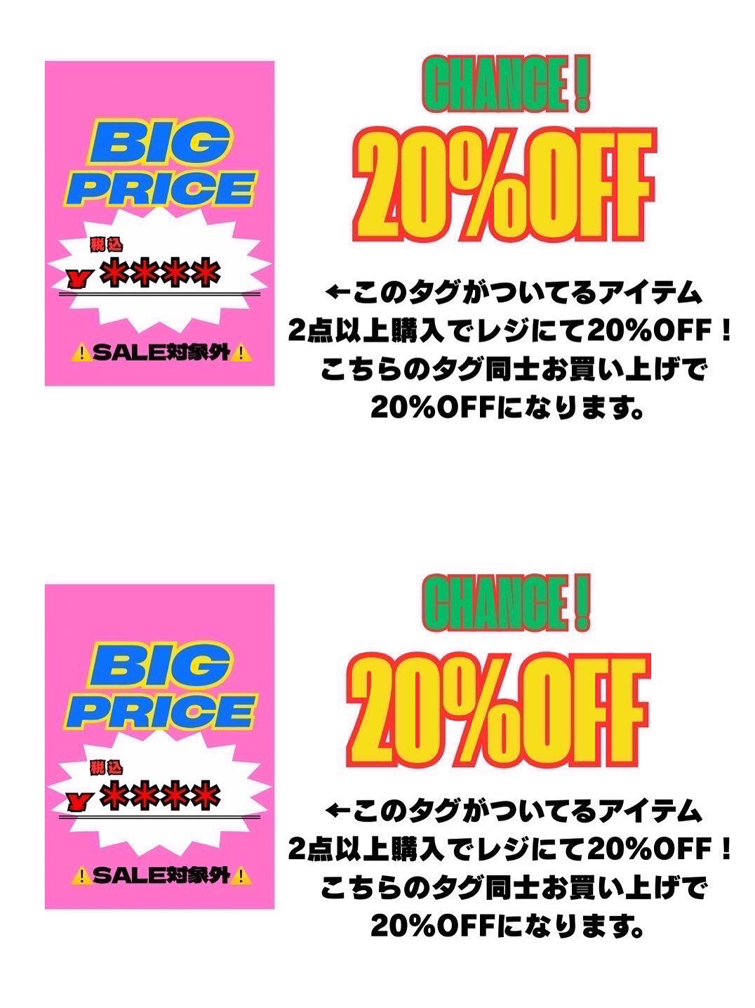 こちらのタグが付いているアイテム2点以上購入で、20%OFFになります