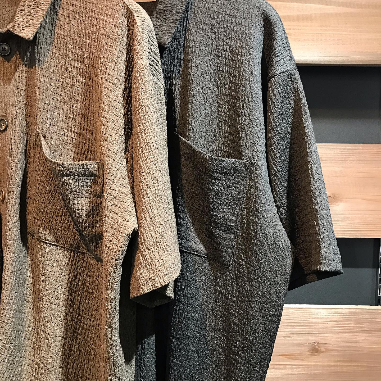 涼やかな印象を与える楊柳生地を使い、洗練された雰囲気を演出する半袖シャツ。