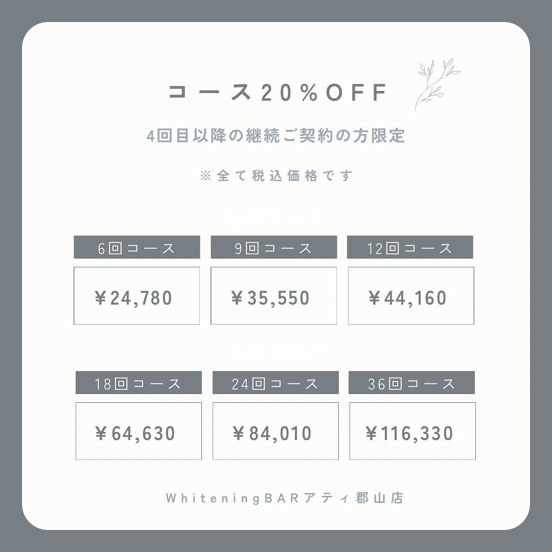 ホワイトニングバーアティ郡山店では、