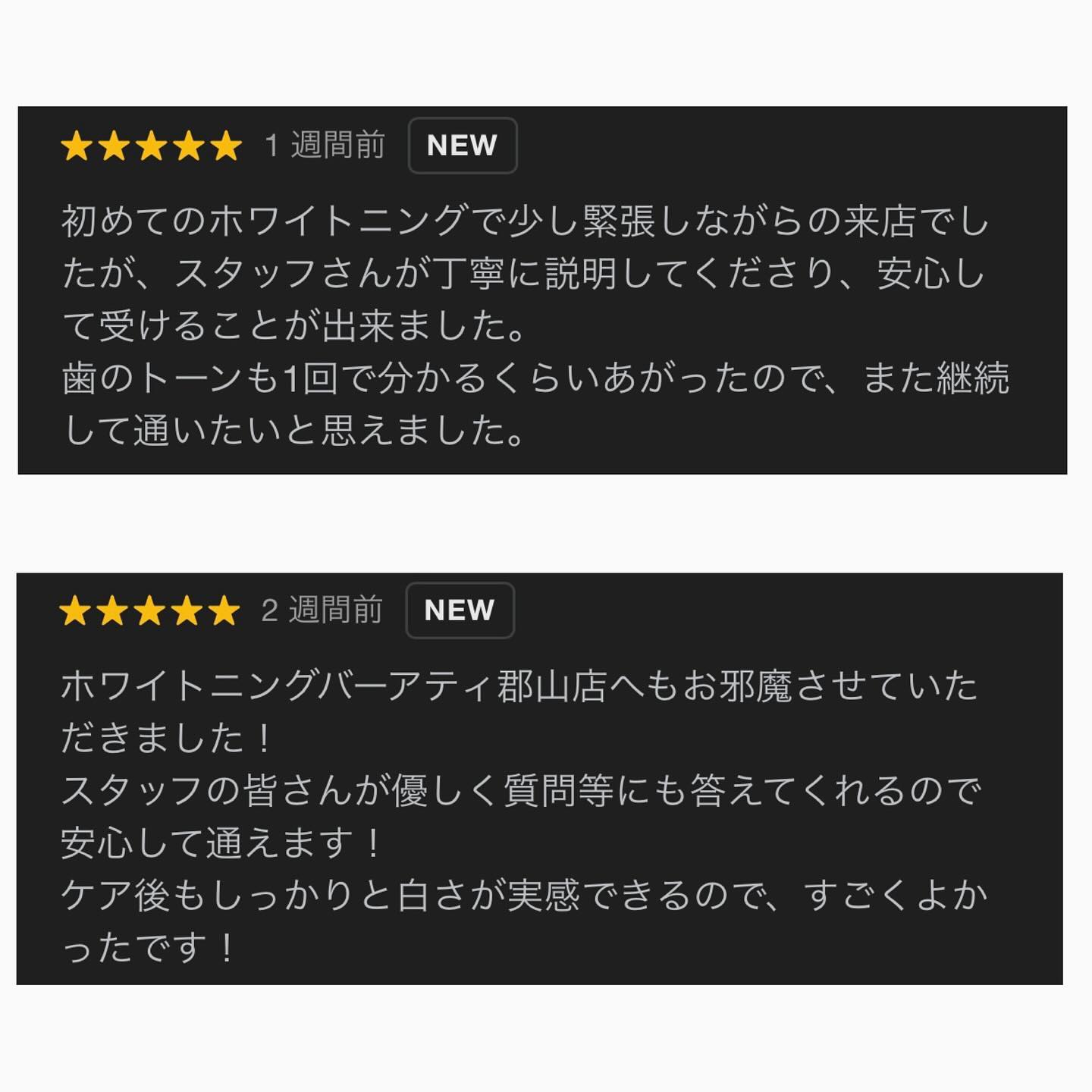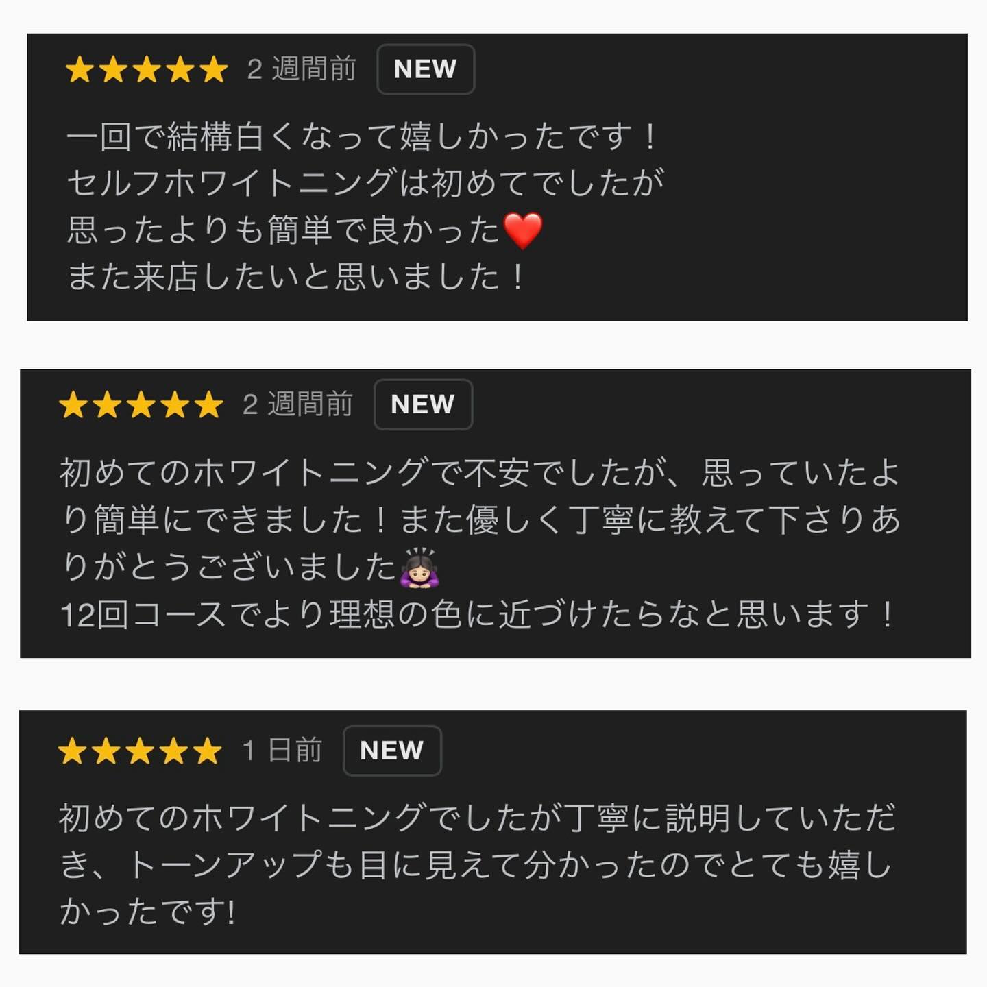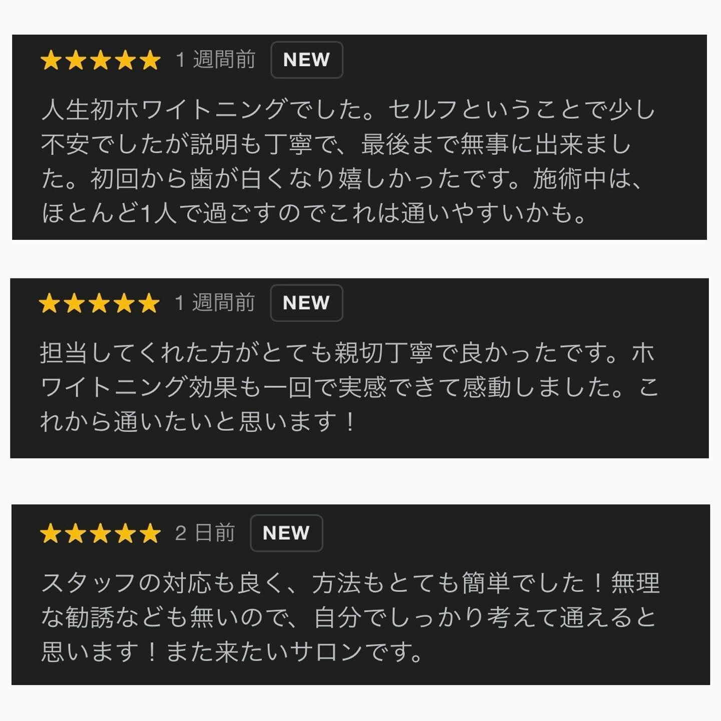 当店ではGoogleにて口コミを書いて頂くと、ホワイトニング1照射(15分照射)プレゼントしております