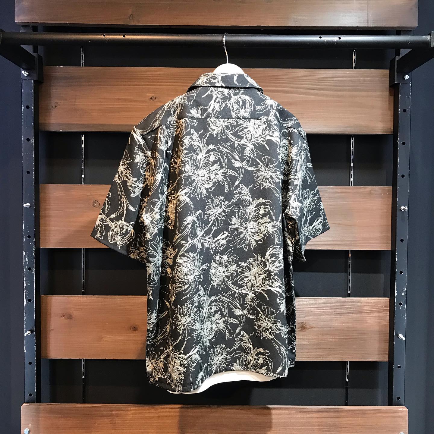 Audience「丹後」 ライトアムンゼン(梨地) 捺染 モノトーンフラワー “マシンプリント” オープンカラー ハーフスリーブシャツ