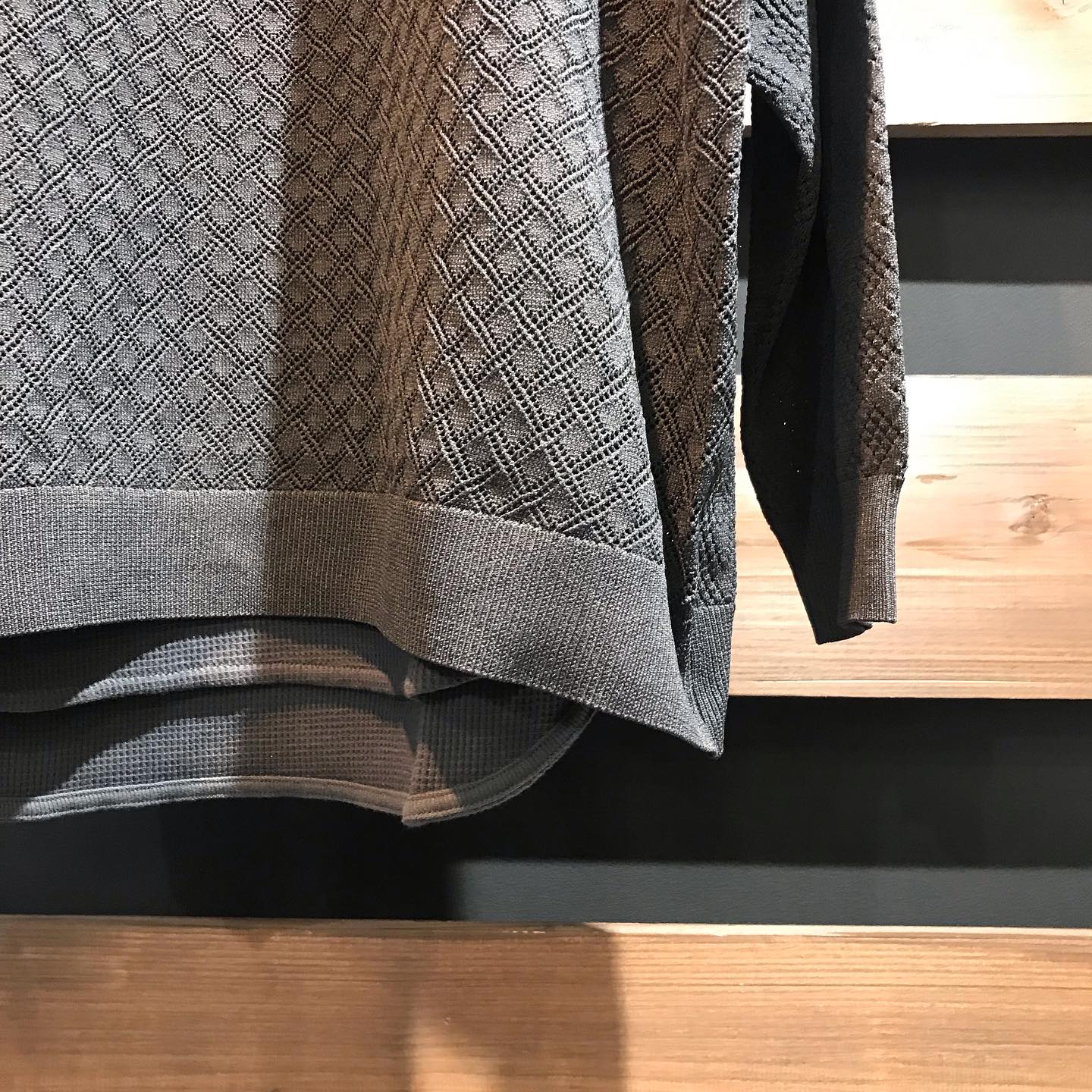 着丈長め、広がりすぎない衿ぐり、ルーズすぎないシルエット。レイヤードスタイルに万能アイテムに仕上っています。
