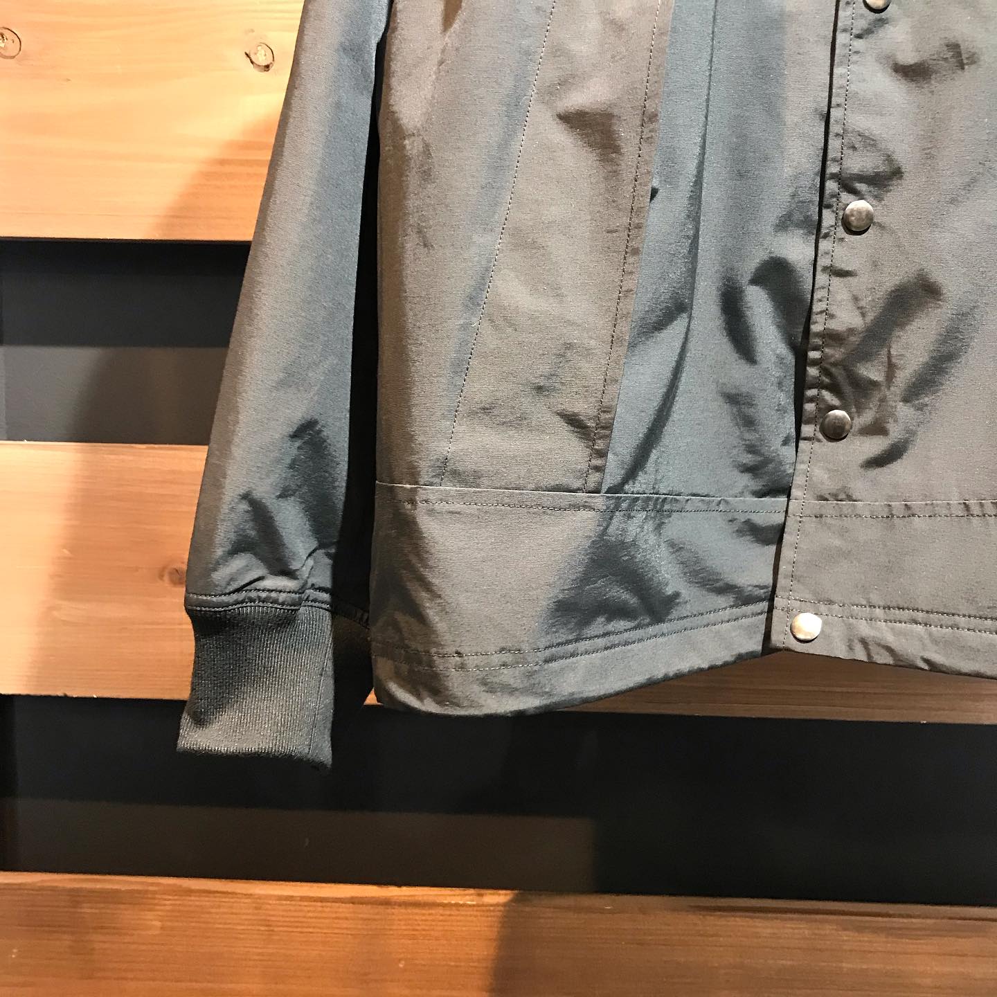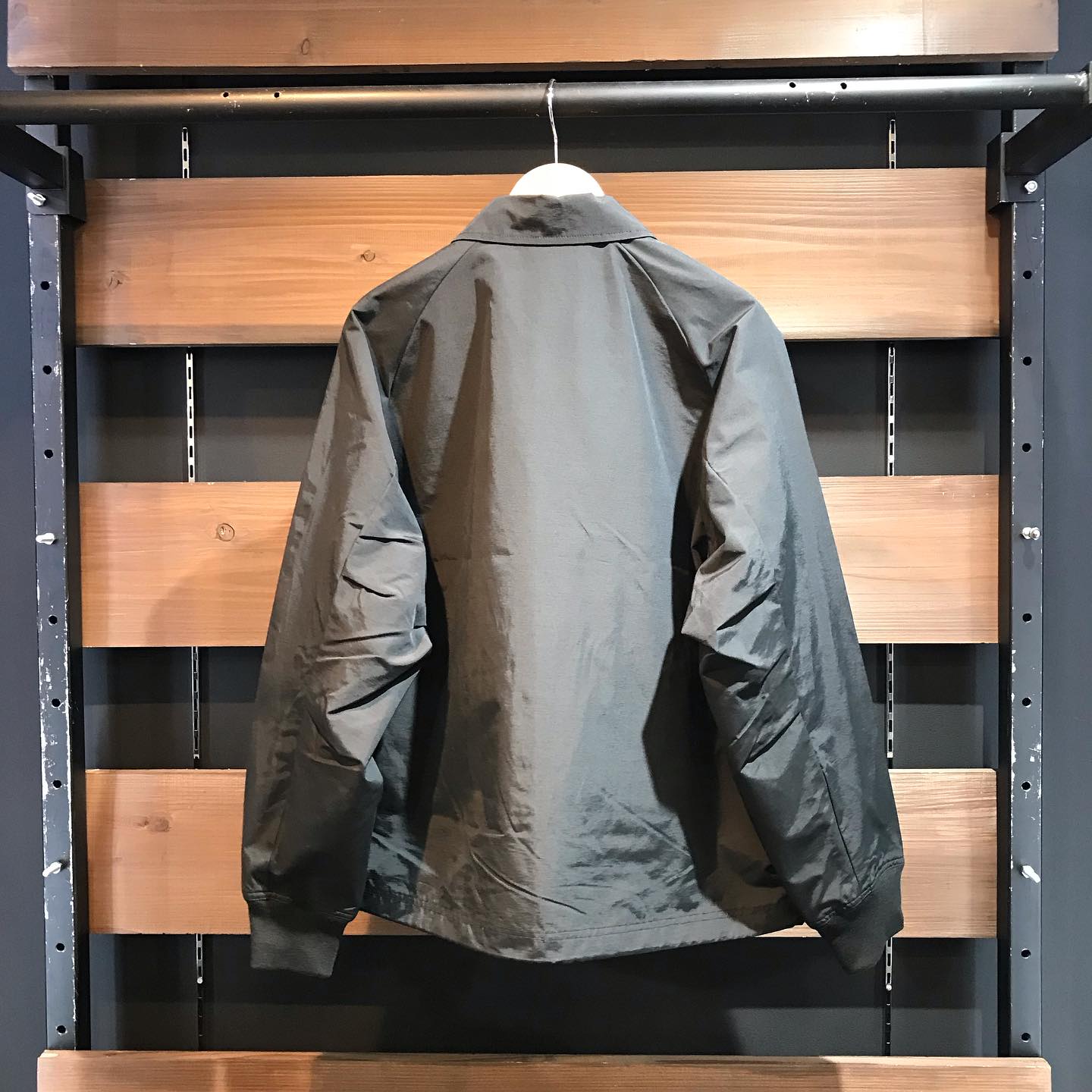 フロントをスナップボタンで開閉する襟付きタイプでコーチジャケットの要素をプラス。