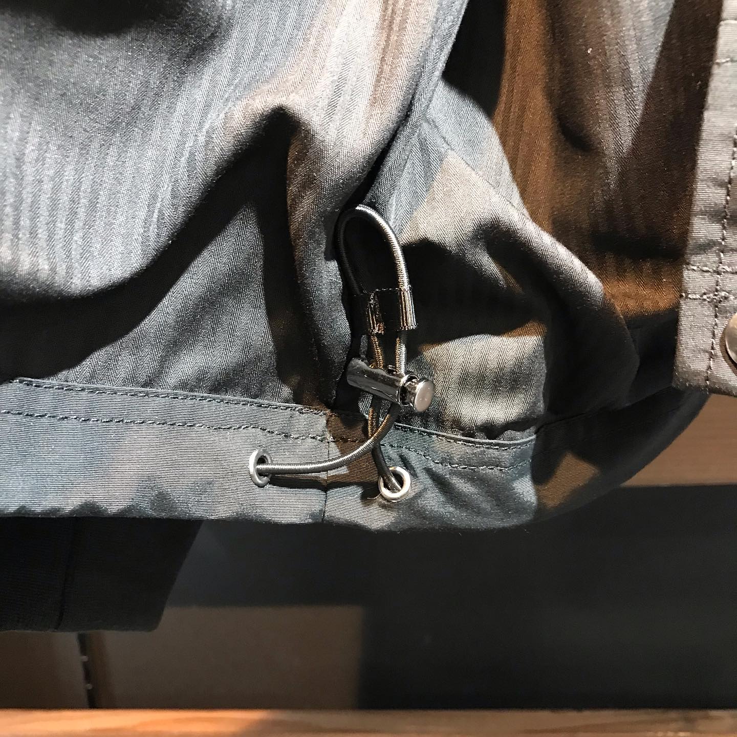 裾のドローコードを絞ったスタイリングも可能。