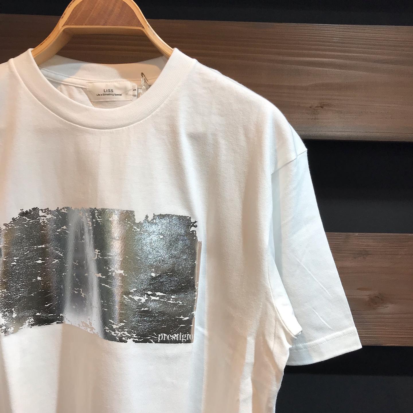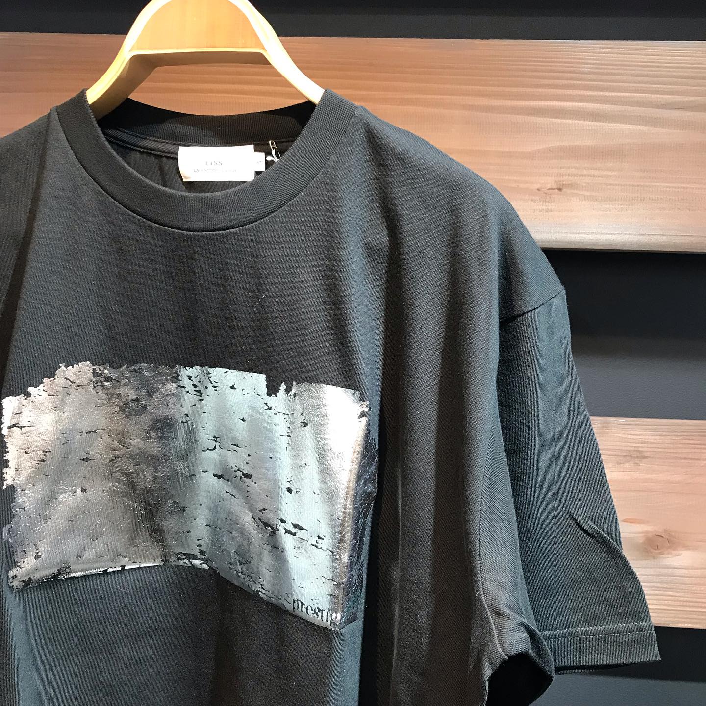 胸元に存在感のあるかすれデザインの箔プリントを施したTシャツ。