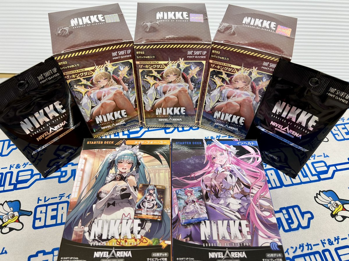 明日28日(金)発売🎉 「勝利の女神:NIKKE」 NIVEL ARENA日本語版 ✅スターターデッキ ST04 インヘルト ST05 メイド・フォー・ユー ✅ブースターパック BT02 ザ・キングダム ※1BOX購入ごとにプロモパックプレゼント 在庫ございます❗️ 皆様のご来店をお待ちしております😊