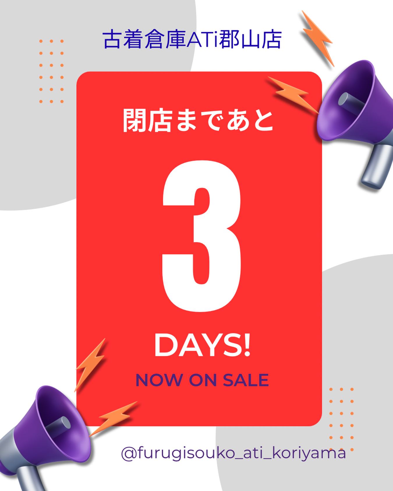 -古着倉庫Ati郡山店- 残すところあと3日となりました 閉店 SALE 開催中 週末もたくさんのご来店お待ちしてます #古着 #古着屋 #福島古着屋 #郡山古着屋 #古着倉庫