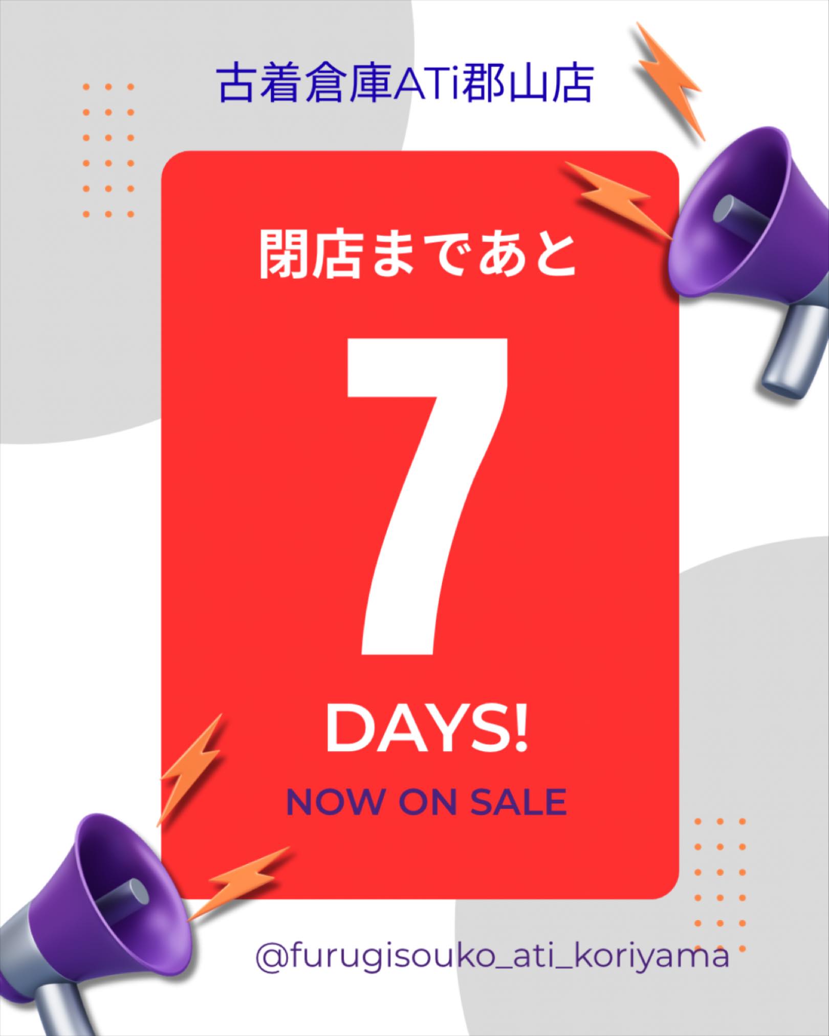 -古着倉庫Ati郡山店- 閉店まで残すところ一週間となりました。 閉店 SALE 開催中です 沢山の皆様にお越しいただきたいです お待ちしております!!! #古着 #古着屋 #福島古着屋 #郡山古着屋 #古着倉庫