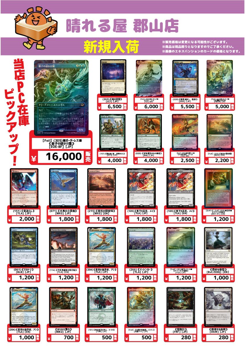 【商品情報】#晴れ郡PC新入荷 晴れる屋郡山店のPCシングル新入荷のお知らせです✨ 🎯注目カードピックアップ🎯 《大梟の小夜曲》1,800円 《不死鳥艦隊の飛行船》EN 1,200円 《素早き救済者、アン》1,200円 🔽晴れる屋郡山店の新商品はこちらから🔽