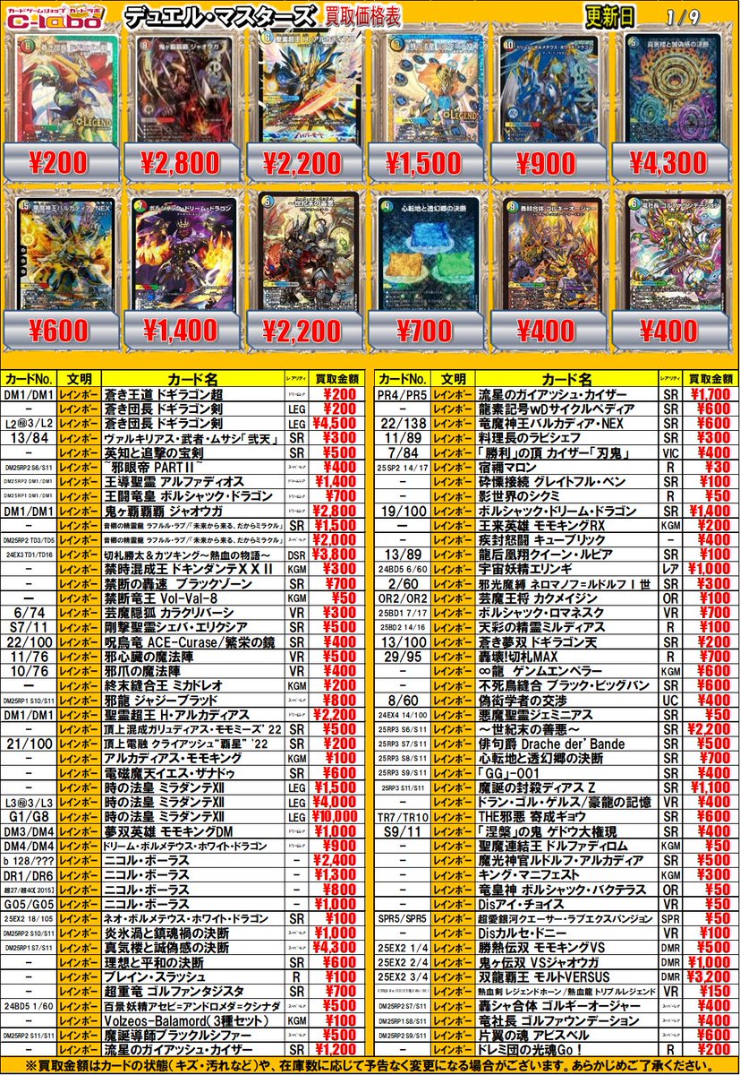 【デュエマ 買取情報】 🔥🔥本日更新🔥🔥 神アートの買取表になります 是非お持ち込みお待ちしております❣❣