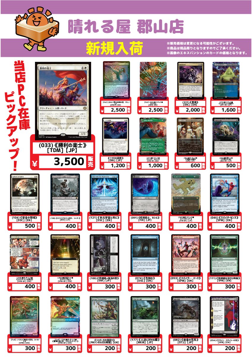 【商品情報】#晴れ郡PC新入荷 晴れる屋郡山店のPCシングル新入荷のお知らせです✨ 🎯注目カードピックアップ🎯 《勝利の楽士》 ¥3,500 《ジャボテンダー》JP¥400🌵 🔽晴れる屋郡山店の新商品はこちらから🔽