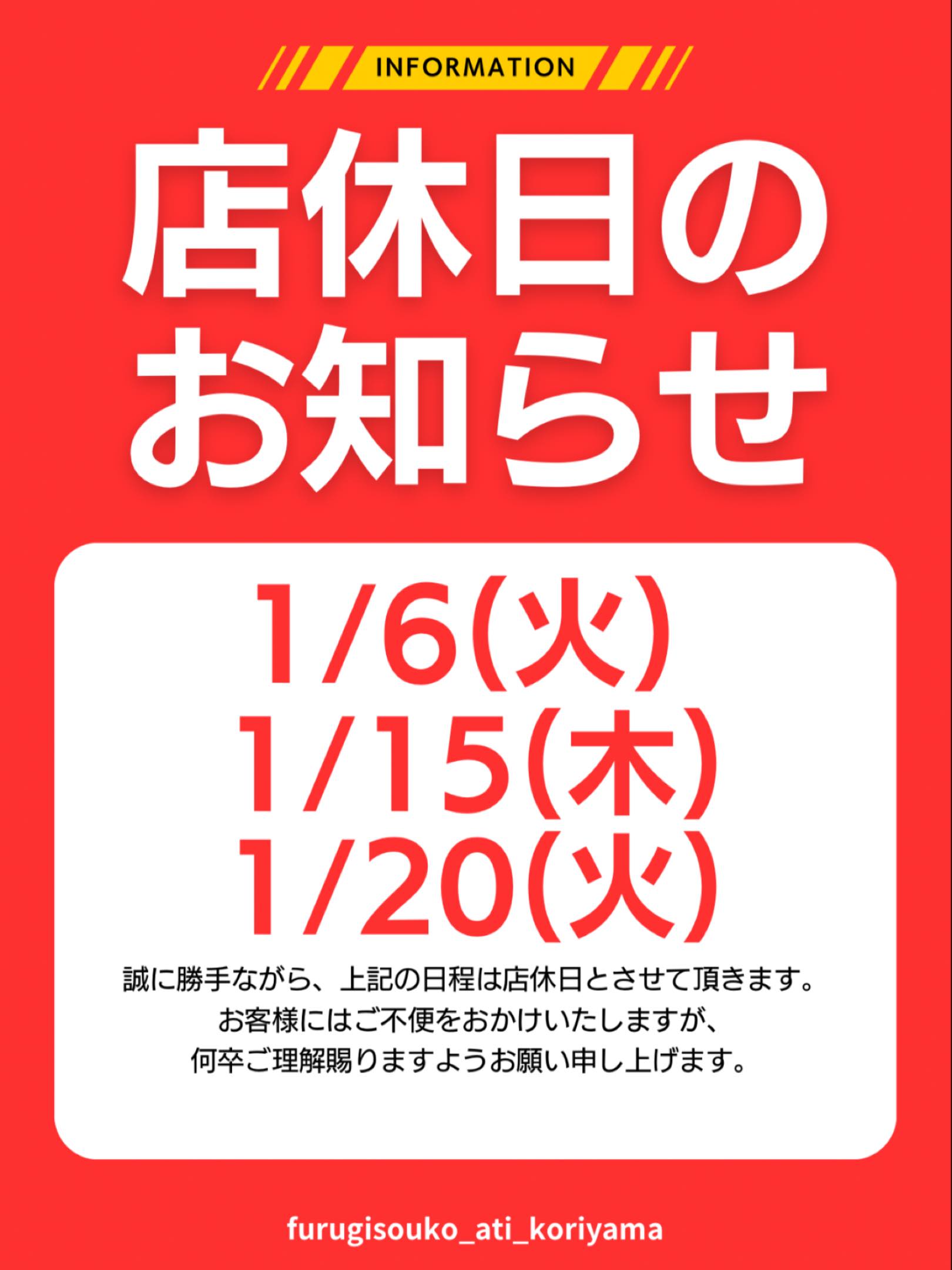 -古着倉庫Ati郡山店よりお知らせ- 誠に勝手ながら、上記の日程は店休日とさせて頂きます。 お客様にはご不便をおかけいたしますが、 何卒ご理解賜りますようお願い申し上げます。 #古着 #古着屋 #福島古着屋 #郡山古着屋 #古着倉庫