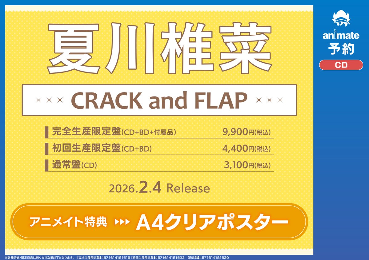 【CD予約情報】 #夏川椎菜 さん「CRACK and FLAP」 予約受付中コォ🎵🎵 発売記念リリースイベントの応募シリアルお渡し・応募締切は1/4(日)まで‼️‼️ 🔽バーコード提示で簡単予約