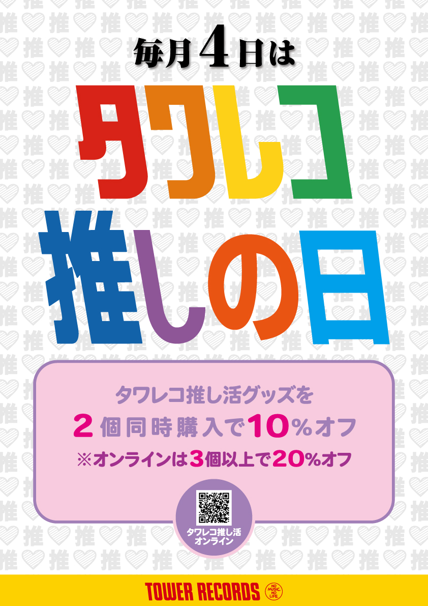 【#タワレコ推しの日】 📢明日11月4日は推しの日🌈 毎月4日限定のキャンペーン💗 ❤️🧡💛💚💙💜🩷🖤🤍 タワレコ推し活グッズ 対象商品2個同時購入で10%オフ‼ ❤️🧡💛💚💙💜🩷🖤🤍 🔽対象商品 #推し活 #推しの日