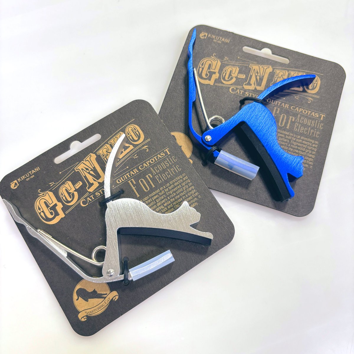 猫カポ 新色入荷しました〜🐈 メタリックカラーのカポタスト シルバーとブルー✨あります! プレゼントにもぜひ🎁 #ギター #猫