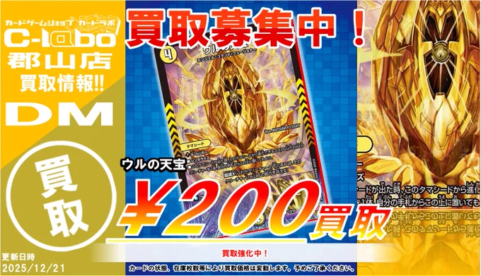 【デュエマ 買取情報②】 こちら最新弾のカードの買取情報になります‼️ 🔥ウルの天宝 ¥200買取🔥 🔥創世竜 Dracheder’ Zen ¥50買取🔥 🔥~そして覚醒へ~⋯ ¥800買取🔥 🔥楽蛇の虚 フミガルド ¥300買取🔥 皆様のお持ち込みお待ちしております‼️