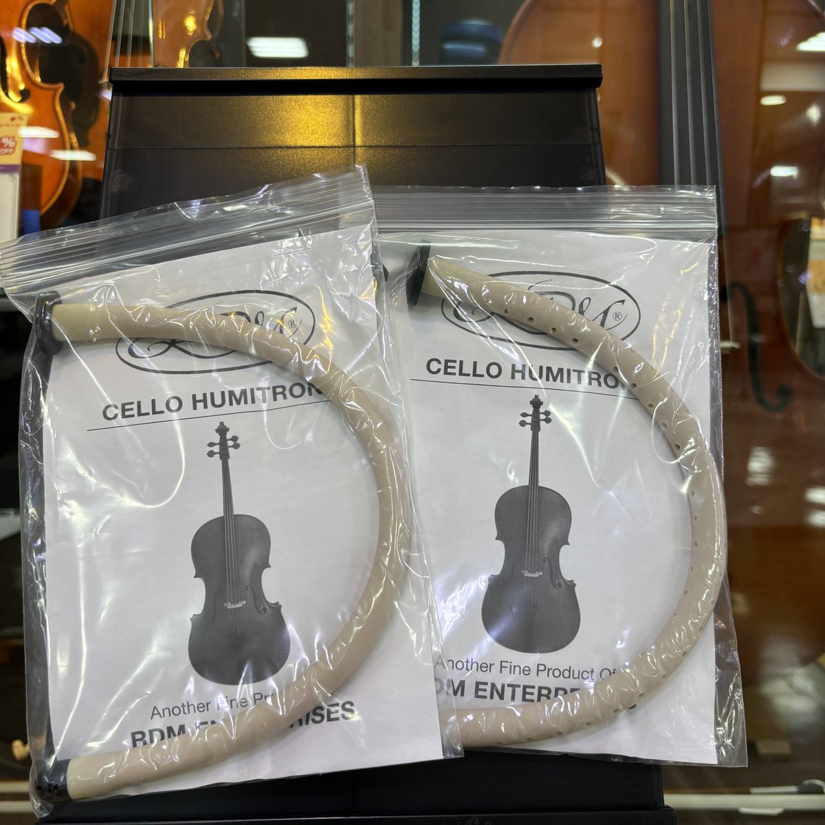 【#弦楽器】 寒くなってまいりましたね…🍁 これからの乾燥する時期にぴったりな 湿度調整剤をご紹介します! 『ヒューミトロン』!! 使い方は… ①水に浸す ②表面の水気をふき取る ③f字孔に入れる 加湿効果があり、乾燥による割れや剥がれを防いでくれます♪ 大切な楽器のためにぜひ🎻