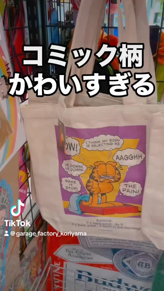 ガーフィールドのコミックトートバッグが入荷! アメリカンでお洒落🧸 レトロな風合いでどんなコーデにもバッチリ! A4サイズなので使いやすさ抜群です 是非ともアメリカン雑貨のお店”ガレージファクトリーアティ郡山”へお越しください! #福島 #郡山駅 #郡山駅前 #アティ郡山 #ガレージファクトリーアティ郡山