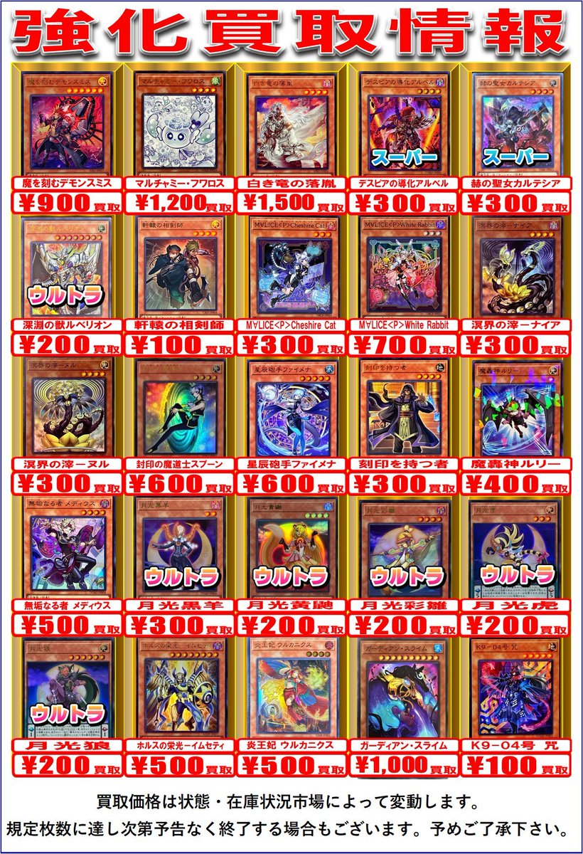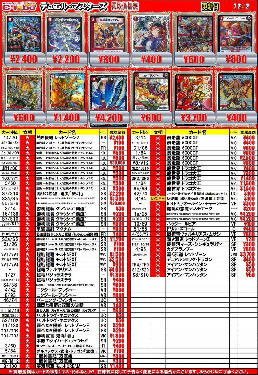 【デュエマ 買取情報】 偽りの希望 鬼丸「終斗」 SR ¥2,200 S級原始 サンマックス SR ¥300 S級原始 サンマッド SR ¥500 鬼ヶ覇覇覇 ジャオウガ ドリームレア ¥2,200 などなど 神アートや汎用系もお買取募集中です 是非お持ち込みお待ちしております❣❣
