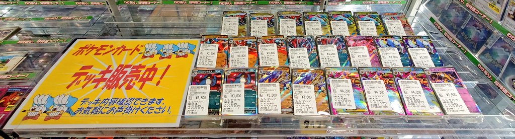 シーガル郡山店です! ポケモンカード 構築済みデッキ ショーケースにて好評発売中! アブソルストリンダー デッキを作成しました😊 お品切れしていたデッキも追加して販売中です! 現在のお品揃えは画像のとおり! #シーガル郡山店デッキ販売 や 店頭でもリスト確認OK! ご来店お待ちしております🙌