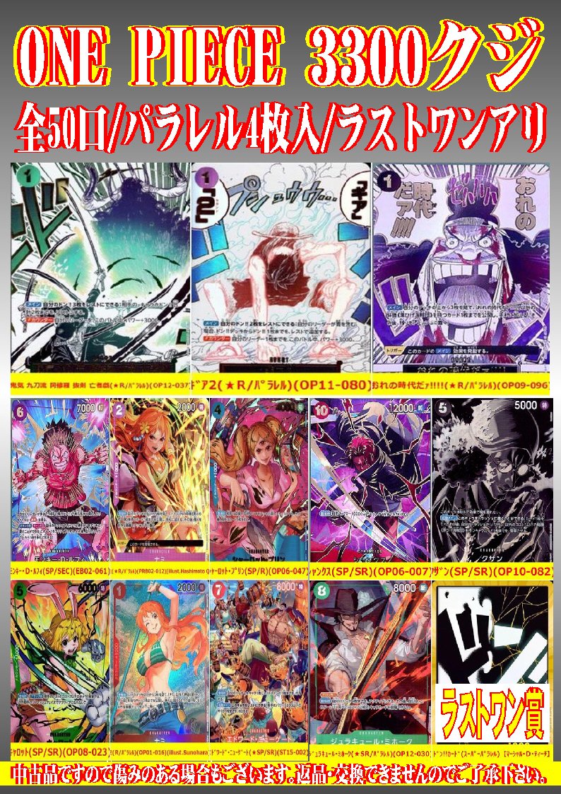 シーガル郡山店です。 ワンピ3300円クジ作成致しました‼️ 全50口ラストワンありとなっております。 よろしくお願いします。