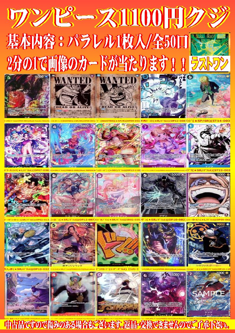 シーガル郡山店です。 ワンピ1100円2分の1クジ作成致しました‼️ よろしくお願いします。