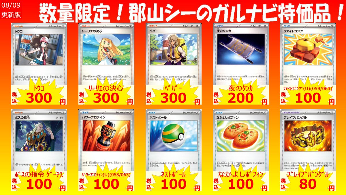 数量限定郡山シー限定ガルナビ特価品! ※買取金額ではございません※ メガライボルトex(RR)(032/063) ¥100 メガルカリオex(RR)(029/063) ¥150 メガサーナイトex(RR)(042/063) ¥200