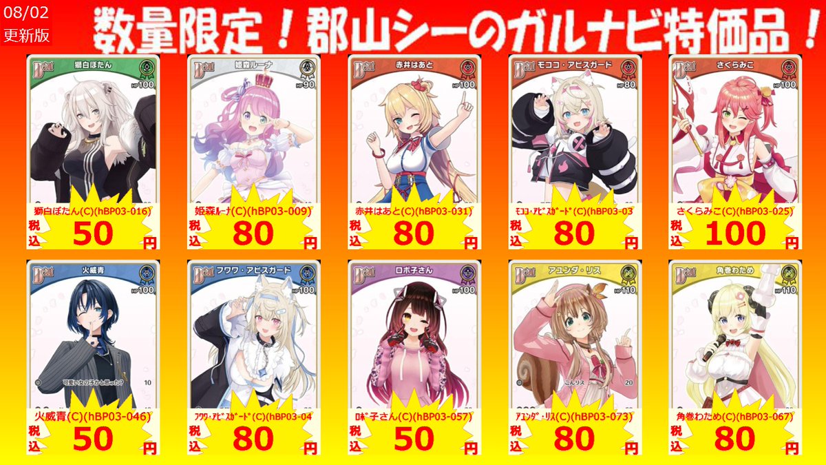 数量限定郡山シー限定ガルナビ特価品! 音乃瀬奏(C)(hBP03-080) ¥50 セシリア・イマーグリーン(C)(hBP04-028) ¥50 マネちゃん(C)(hSD01-017)[illust.こまいぬ] ¥50 #ホロカ #特価品 #シーガル郡山