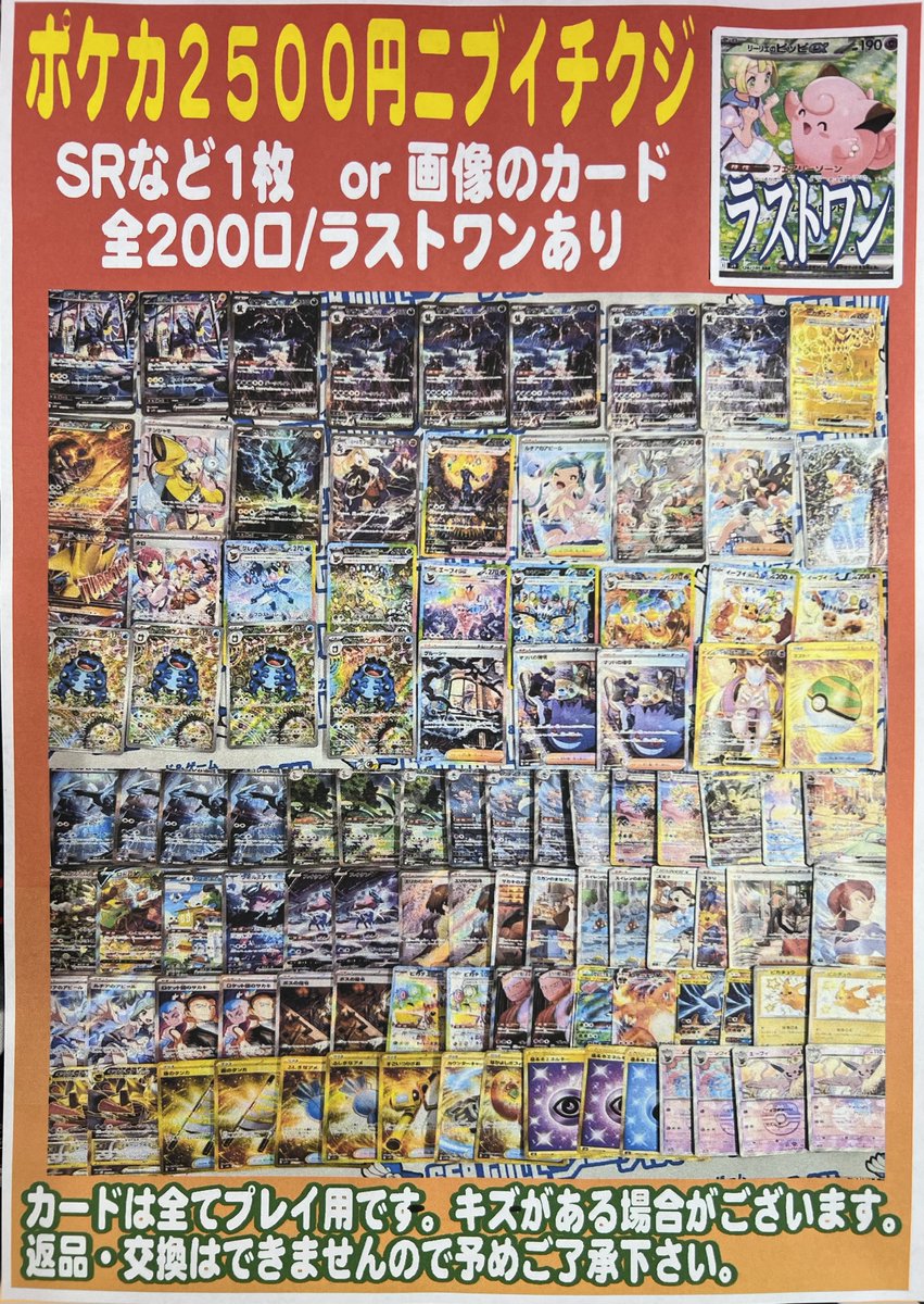 『ポケカ2分の1くじ』 ¥2,500 全200口 只今より販売開始‼️ ラストワンは「リーリエのピッピSAR」✨️ 是非ぜひお試しください(*´ω`*)