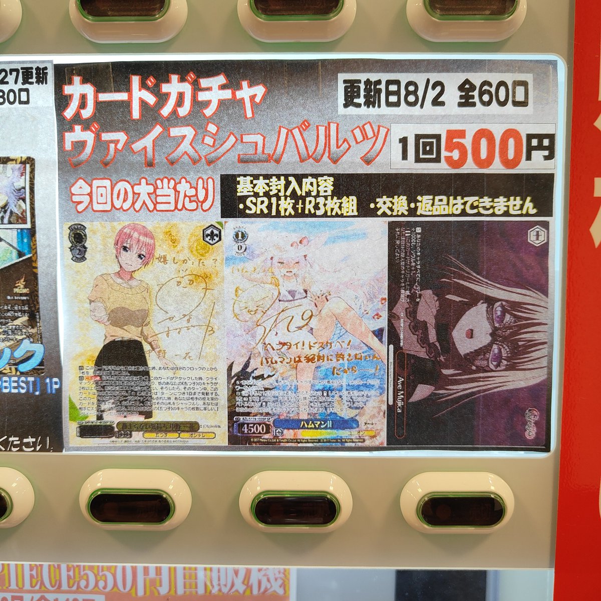 シーガル郡山店です! ヴァイスシュヴァルツ カードガチャ 更新致しました✨ 1回500円 全60口 よろしくお願いします‼️‼️