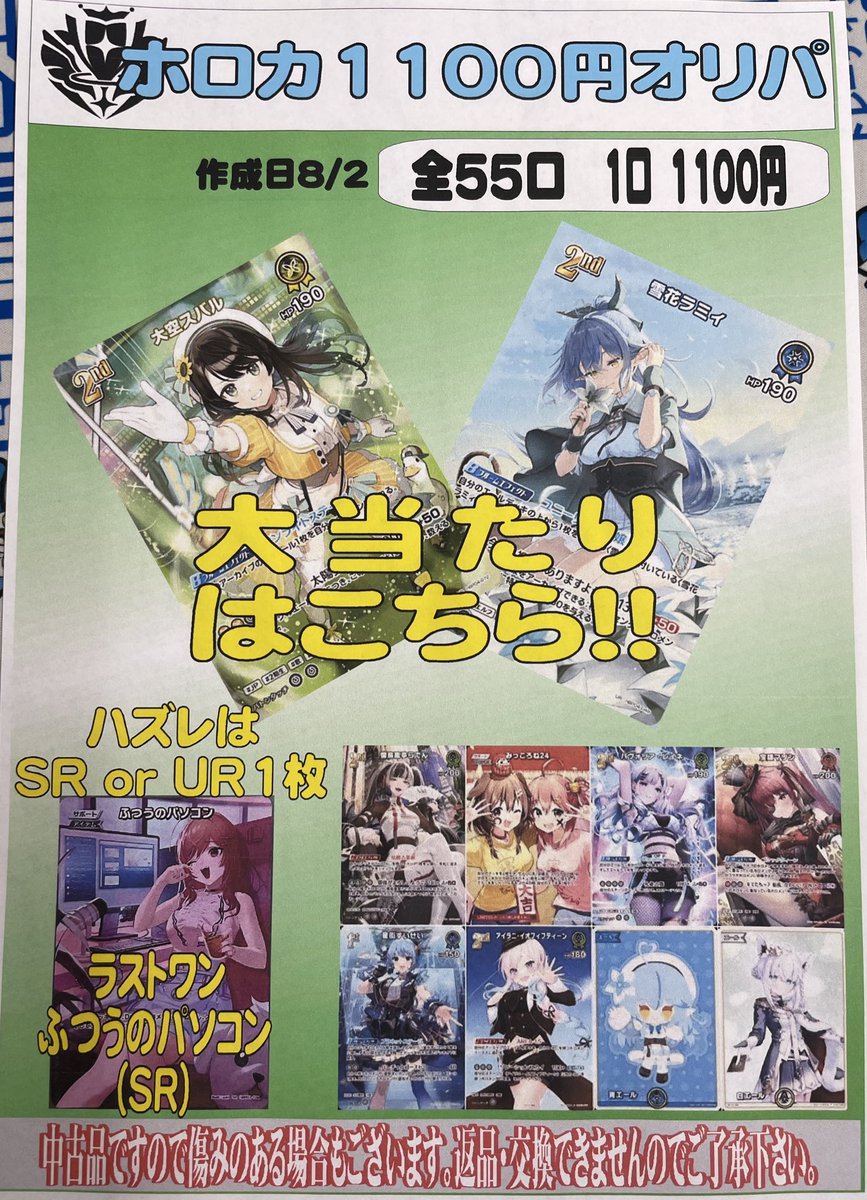 こんにちは(」・ω・) シーガル郡山店です。 ホロカ1100円オリパを作成致しました。 ショーケースにて展開中です。 ご来店お待ちしております(*^^*)