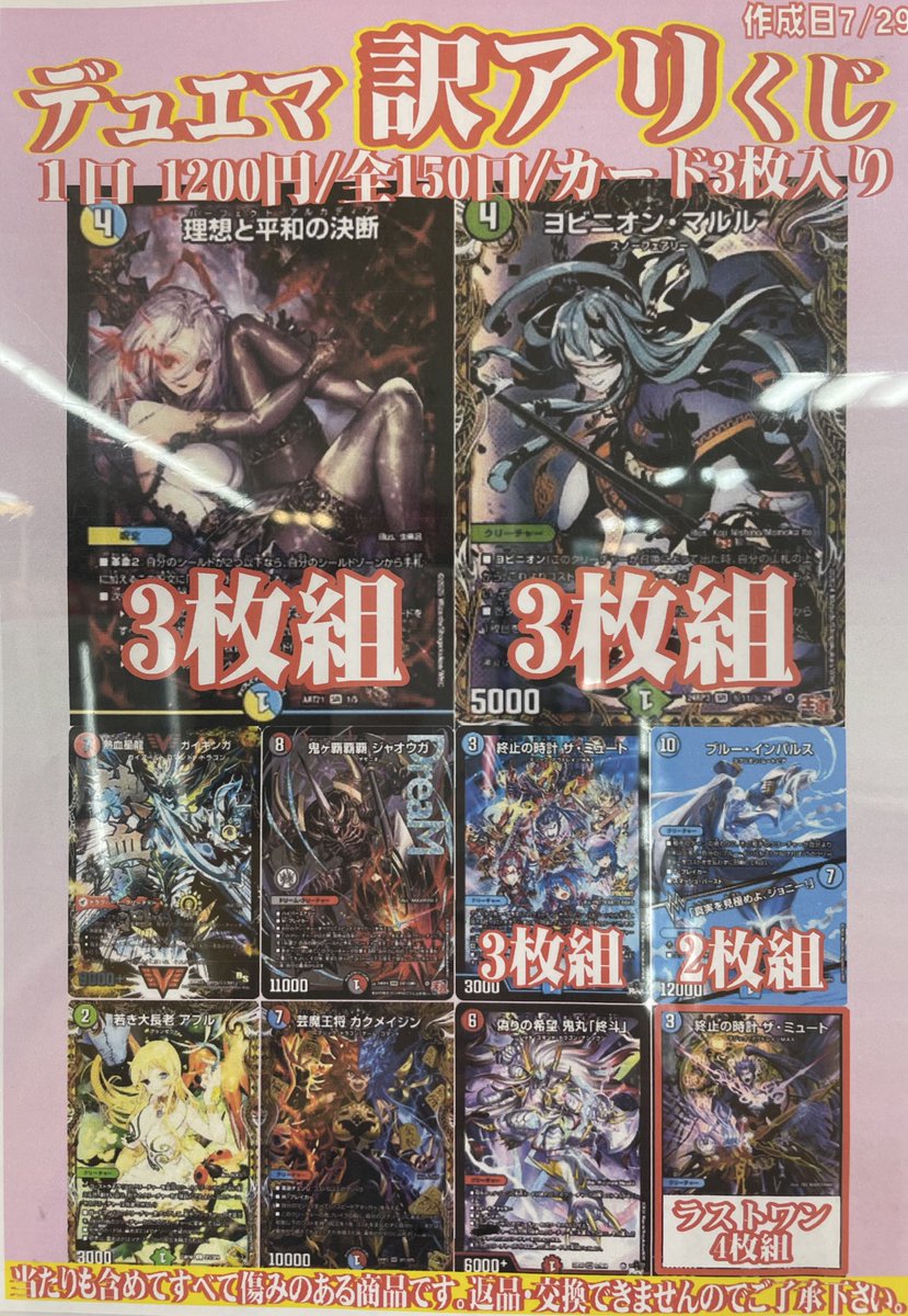前回好評だったデュエマ訳アリくじを作成いたしました❗️ 明日開店と同時に販売開始です(*´ω`*)