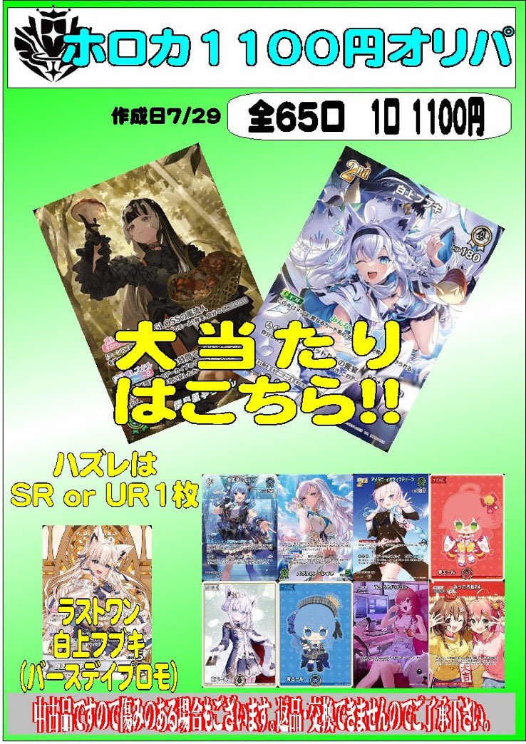 こんにちは(」・ω・) シーガル郡山店です。 ホロカ 1100円オリパを作成致しました。 ご来店お待ちしております(*^^*)