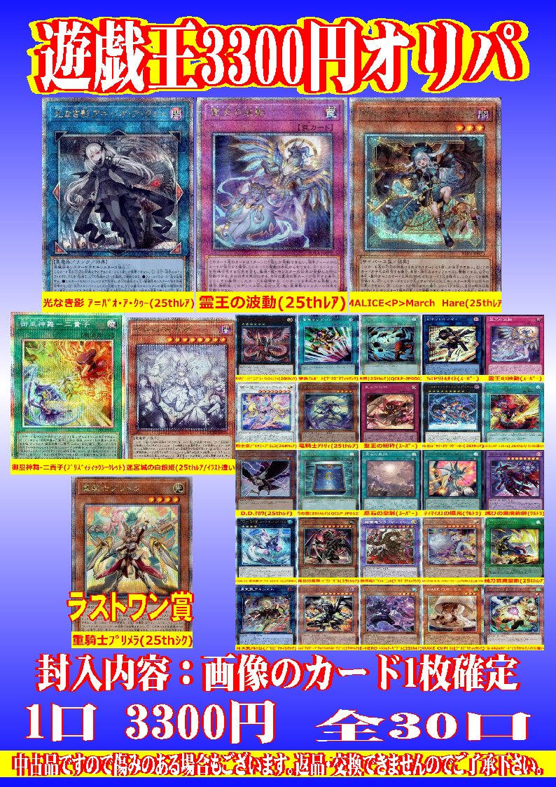 こんばんは、シーガル郡山店です! シーガル郡山店4周年記念 ✨遊戯王3300円オリパ✨ こちら追加作成いたしました! 明日、ご来店お待ちしております!