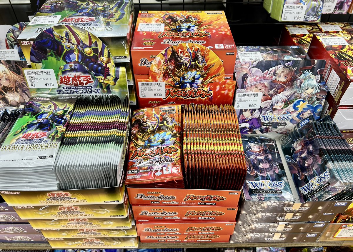 本日発売🎉 遊戯王OCG 「DOOM OF DIMENSIONS」 バトルスピリッツ アニメブースター 「バーニングレガシー」 ウィクロスTCG 拡張パック「PRIMAL SELECTOR」 在庫ございます❗️ 皆様のご来店をお待ちしております😊