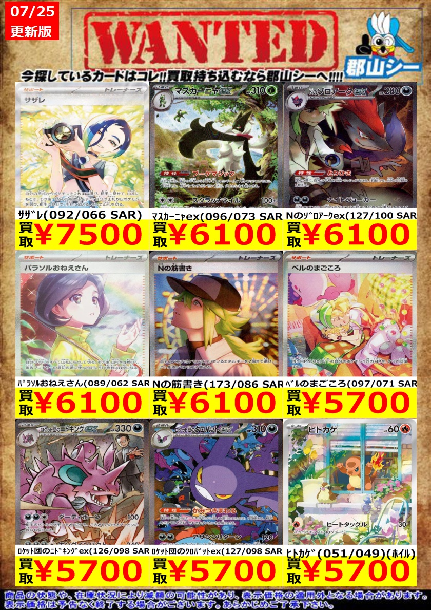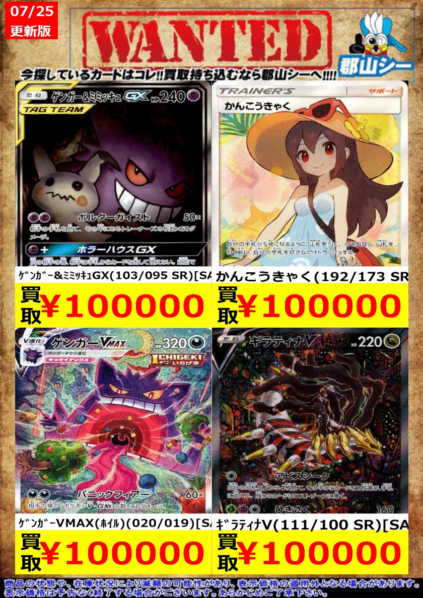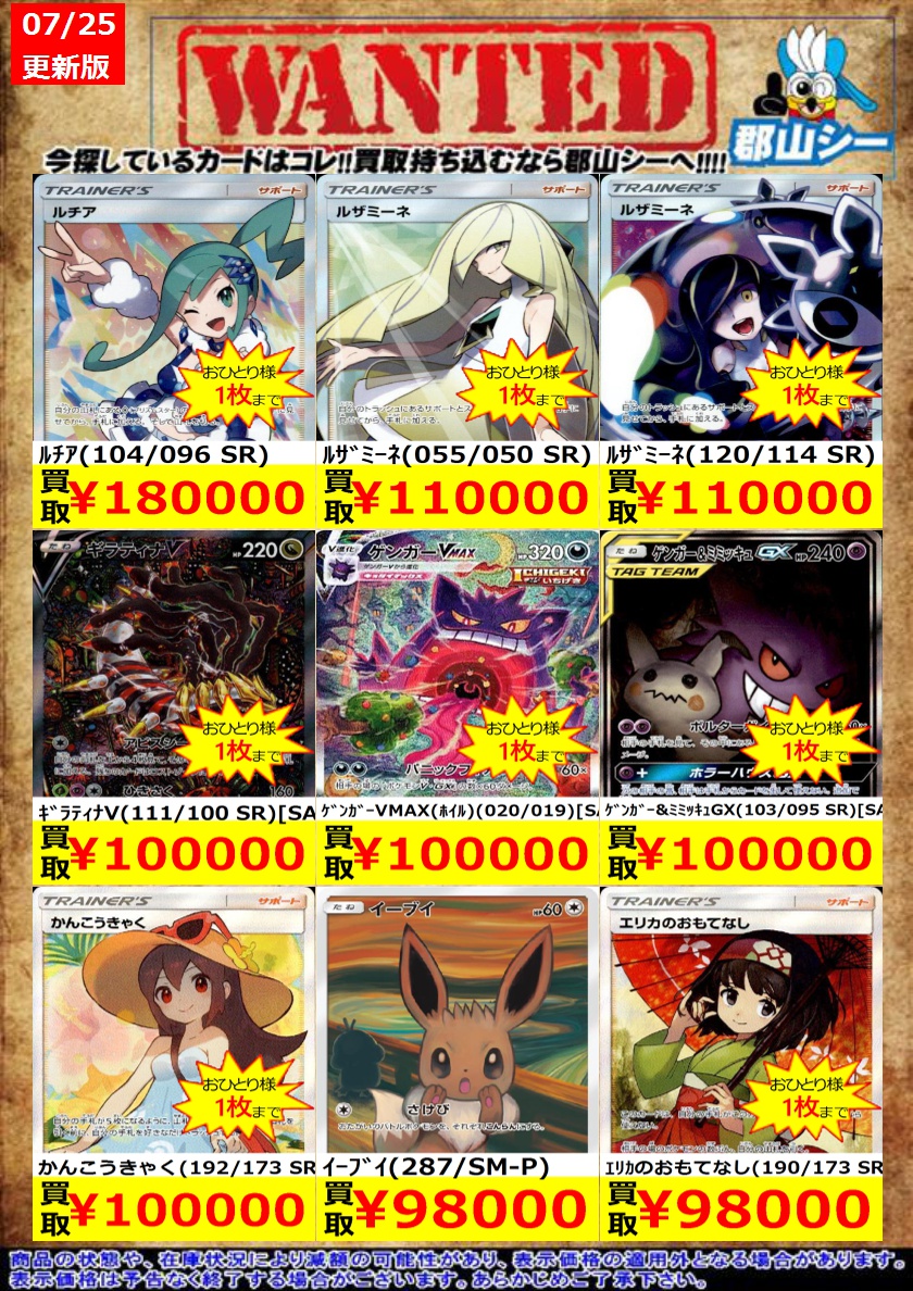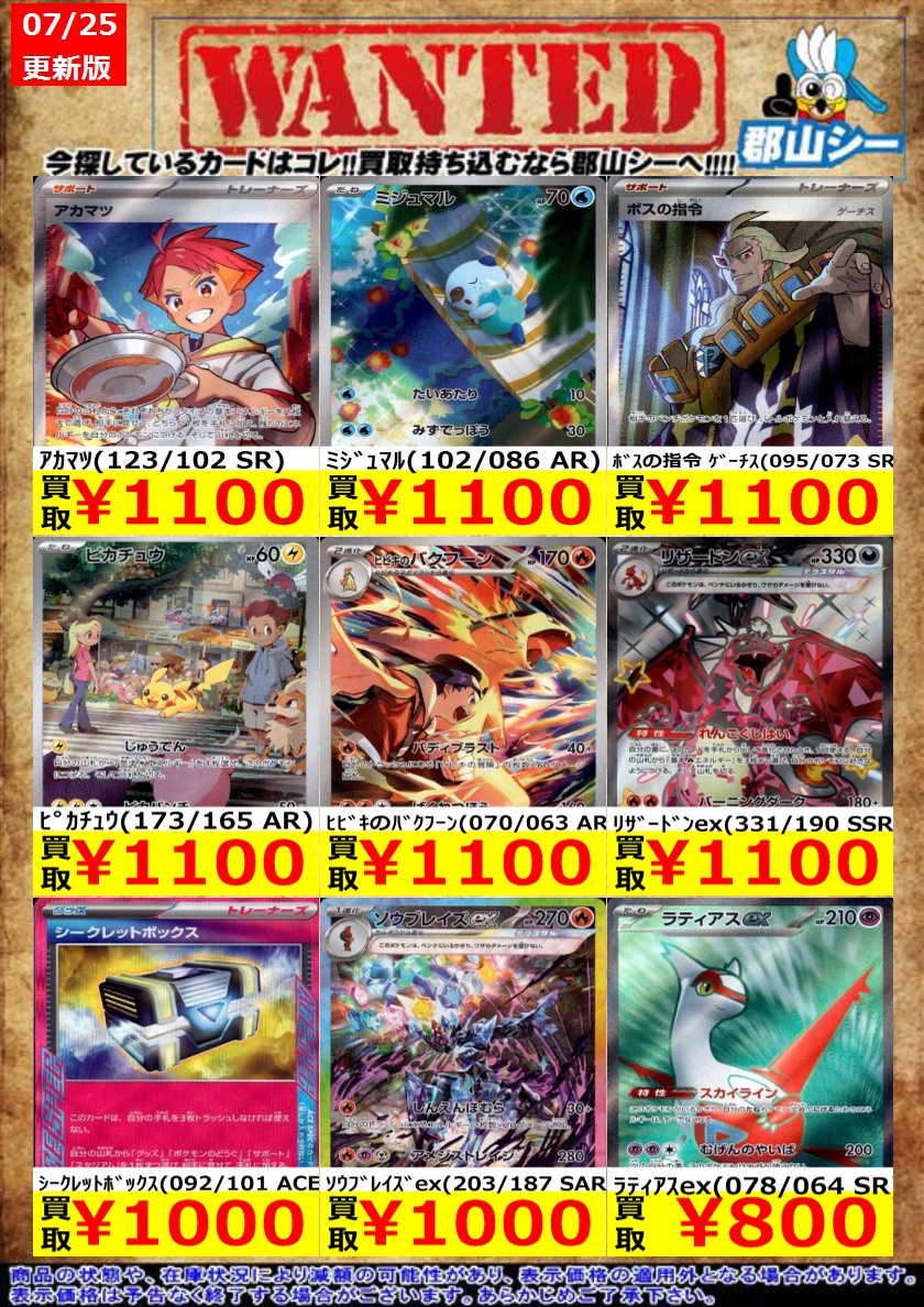 シーガル郡山店ポケカ数量限定お買取り情報更新です!よろしくお願いいたします! ※商品の状態や在庫状況により減額の可能性があり、表示価格の適用外となる場合がございます。